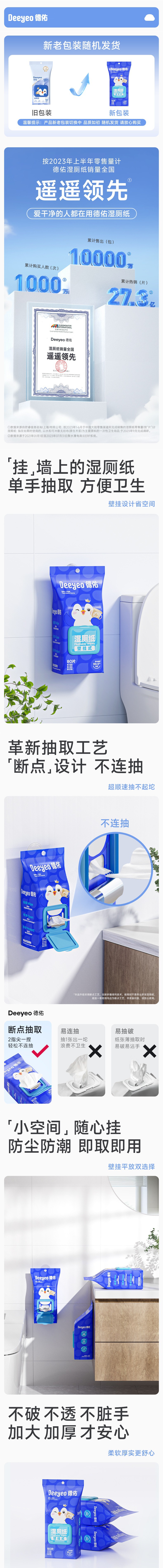 Deyou Wall에 장착 된 교수형 젖은 화장지 80 새로 업그레이드 된 가족 팩 zz 꽃면 펄프를 처리 할 수 있습니다.스토어 가기