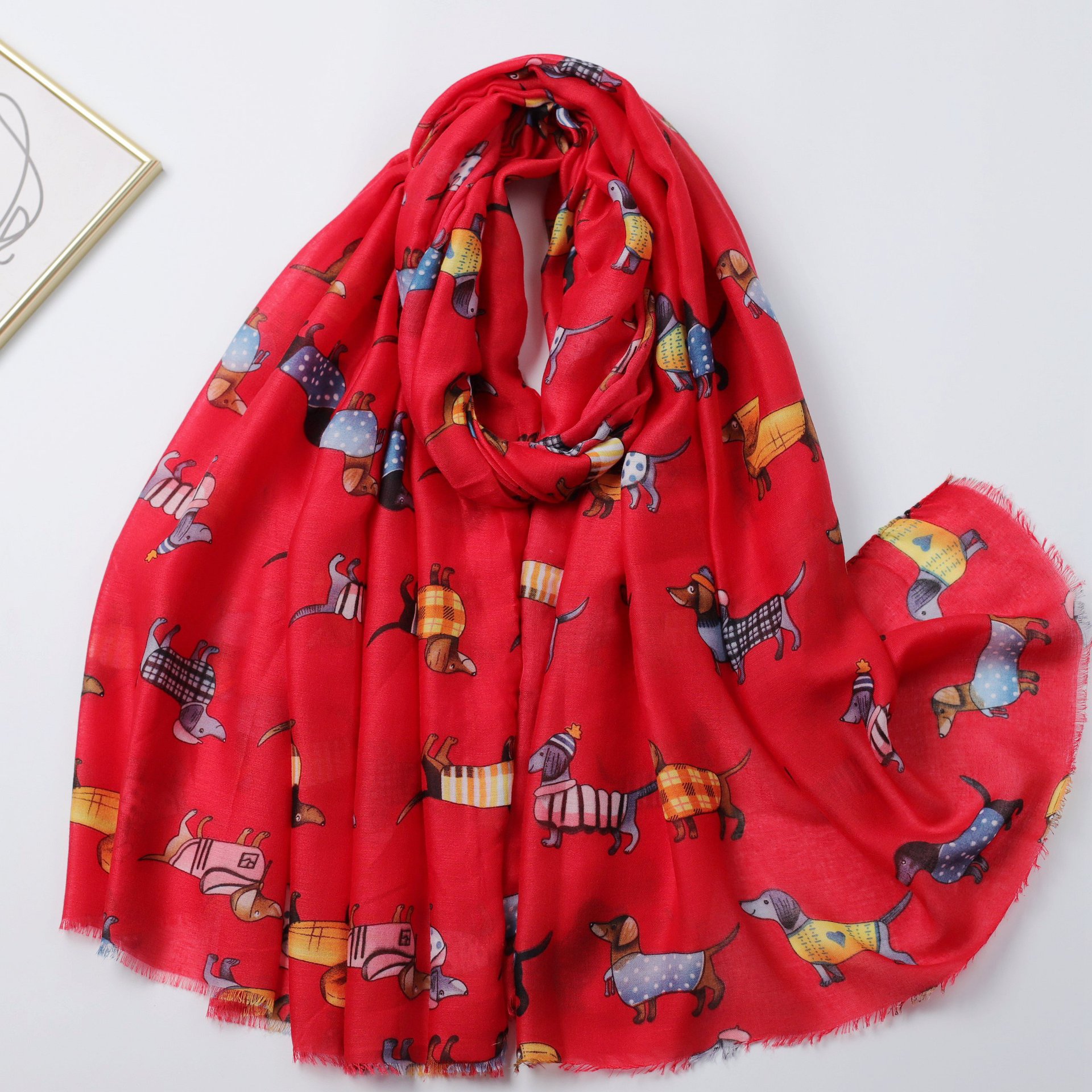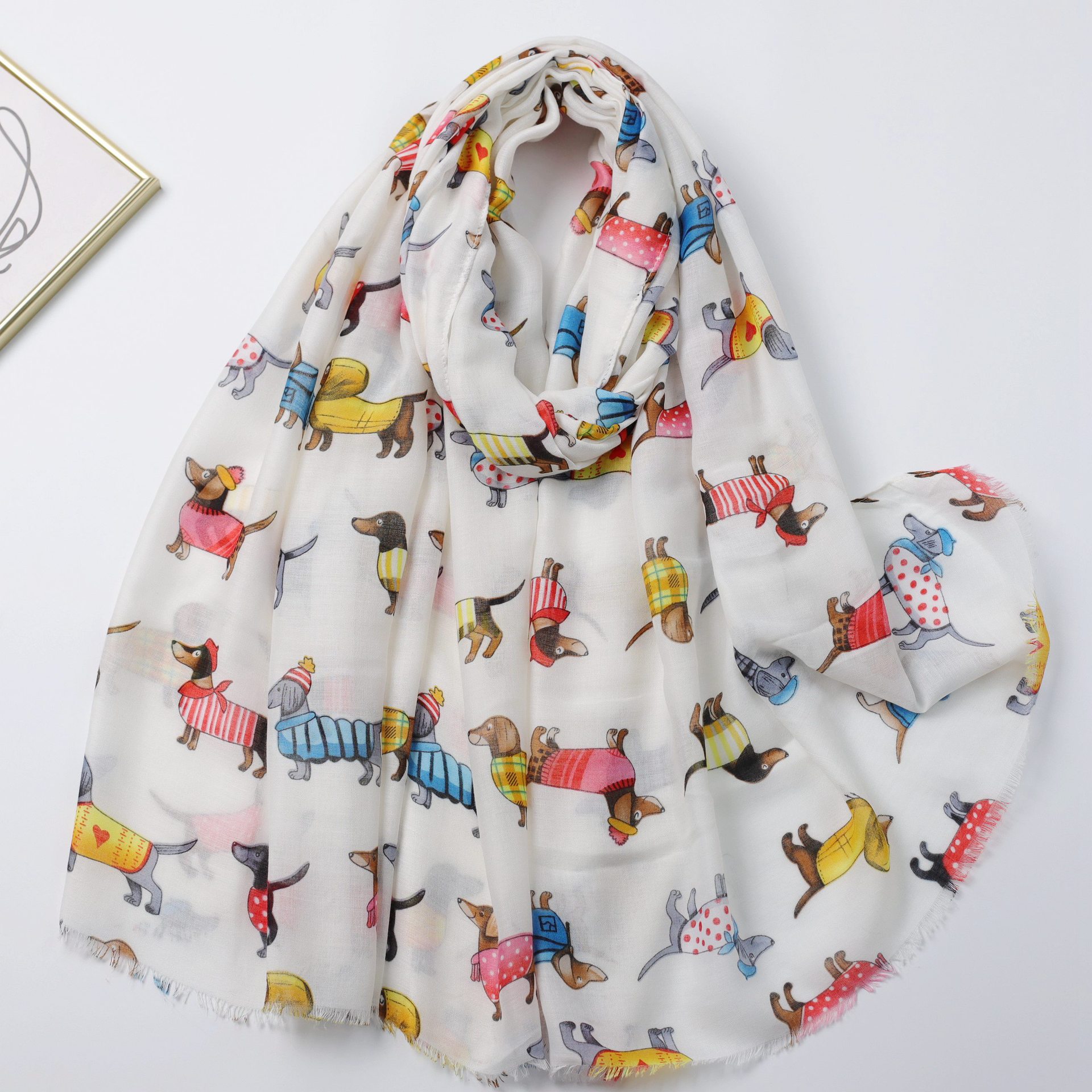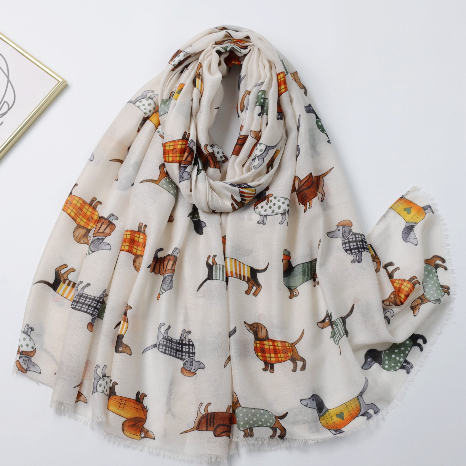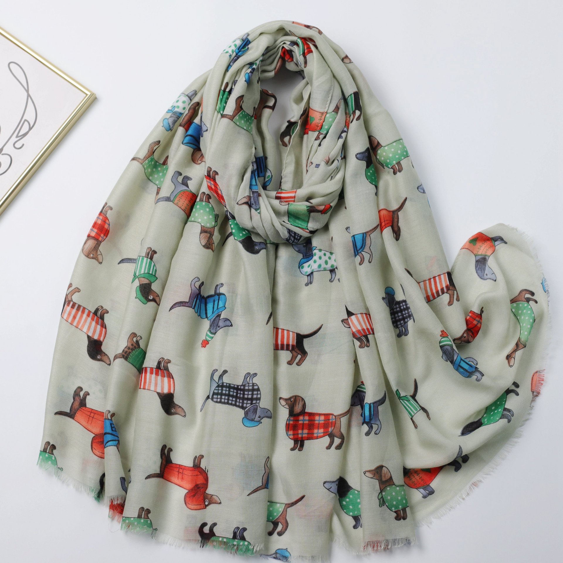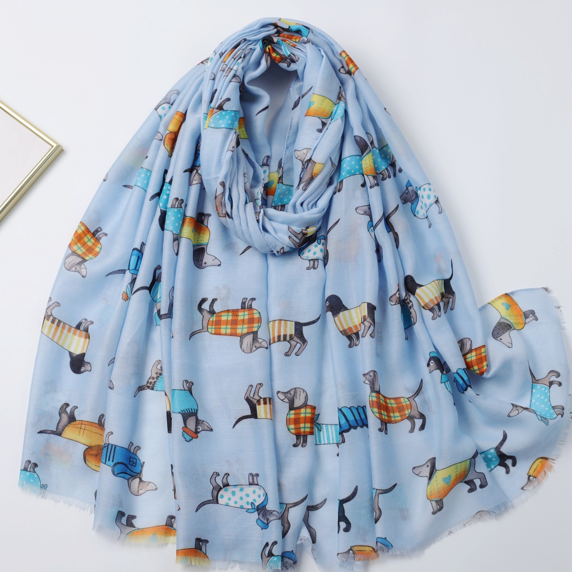 Dachshund Satin Cotton 인쇄 긴 수건 공장 판매 대외 무역 국경 라이브 여행 휴가 선 스크린 따뜻한 여성의 목도리 얇은