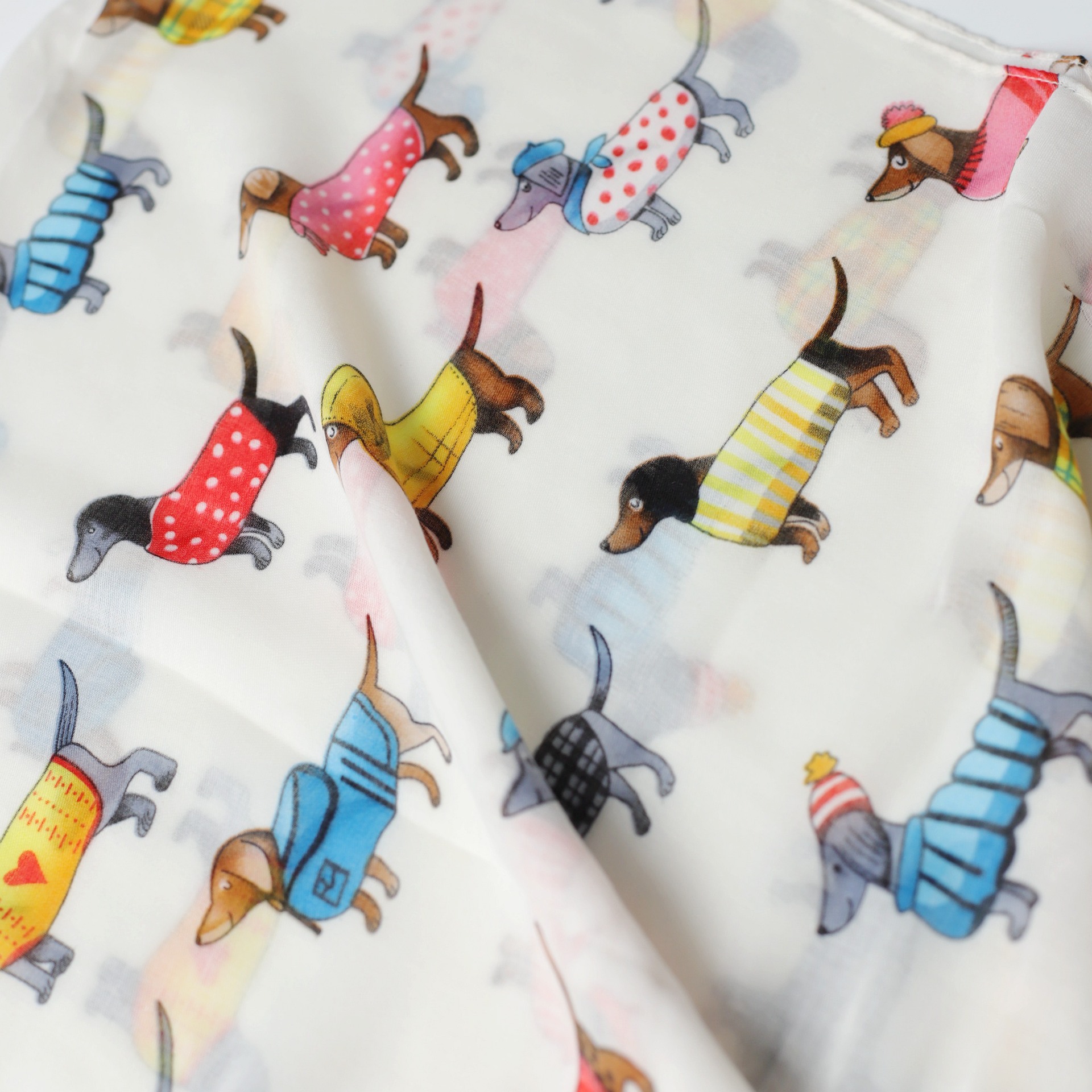 Dachshund Satin Cotton 인쇄 긴 수건 공장 판매 대외 무역 국경 라이브 여행 휴가 선 스크린 따뜻한 여성의 목도리 얇은스토어 가기