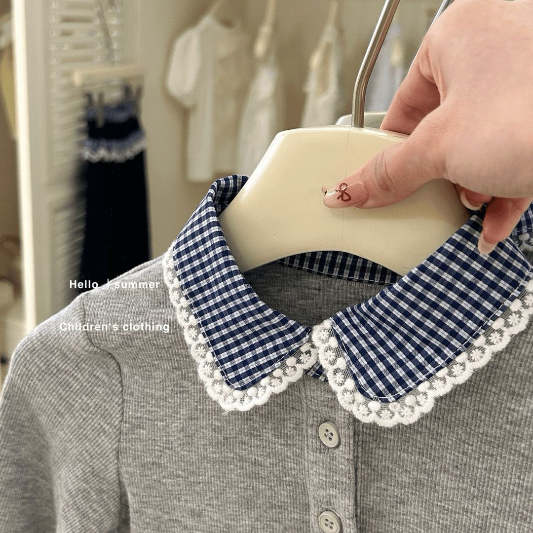 소녀의 봄 원피스 세트 2025 새로운 한국 스타일 소녀 아기의 서양식 스티칭 탑 캐주얼 바지 봄과 가을 투피스 세트