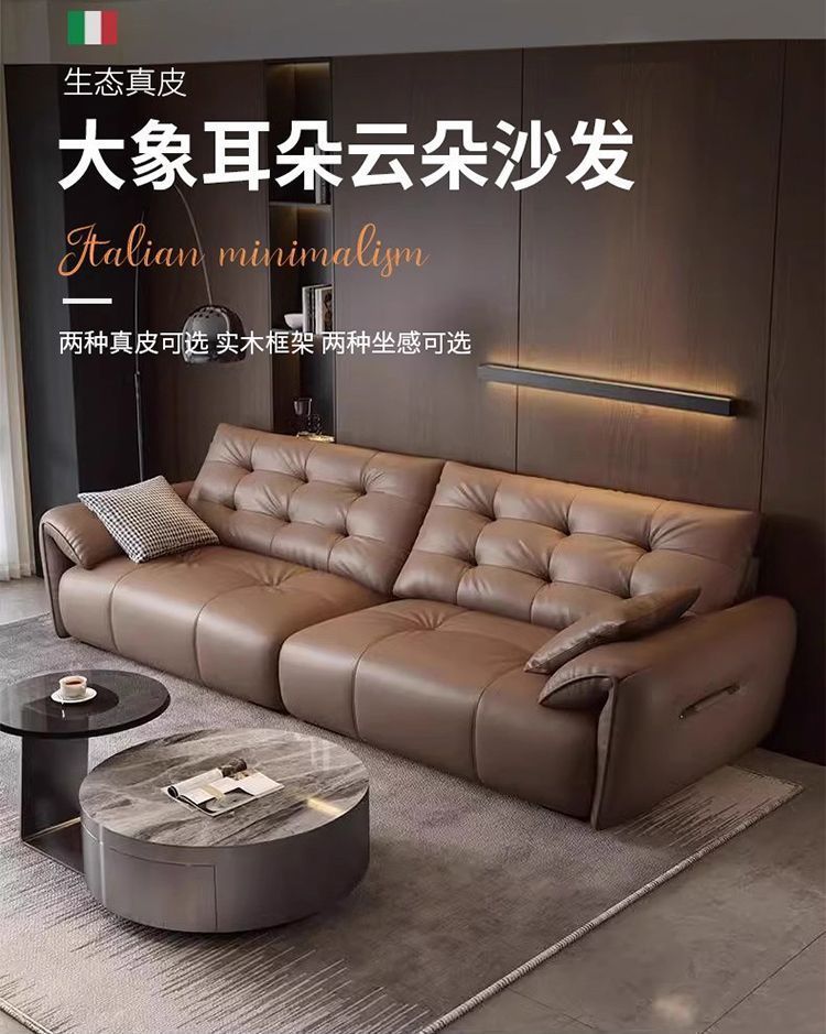 이탈리아 스타일 미니멀리스트 코끼리 귀 가죽 소파 작은 아파트 간단한 가죽 아트 간단한 가죽 아트 현대 스트레이트 로우 카우히데스토어 가기