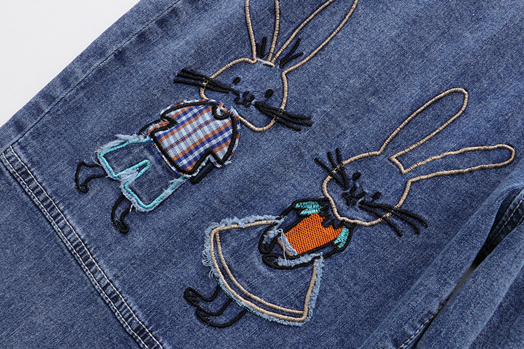 [재고] 통통녀 플러스 사이즈 여성복 2025 봄 · 여름 새 플러스 사이즈 한국 수놓은 토끼 청바지스토어 가기