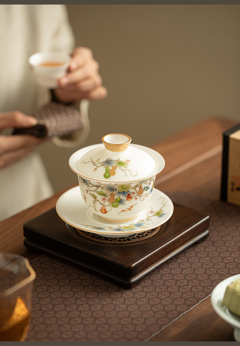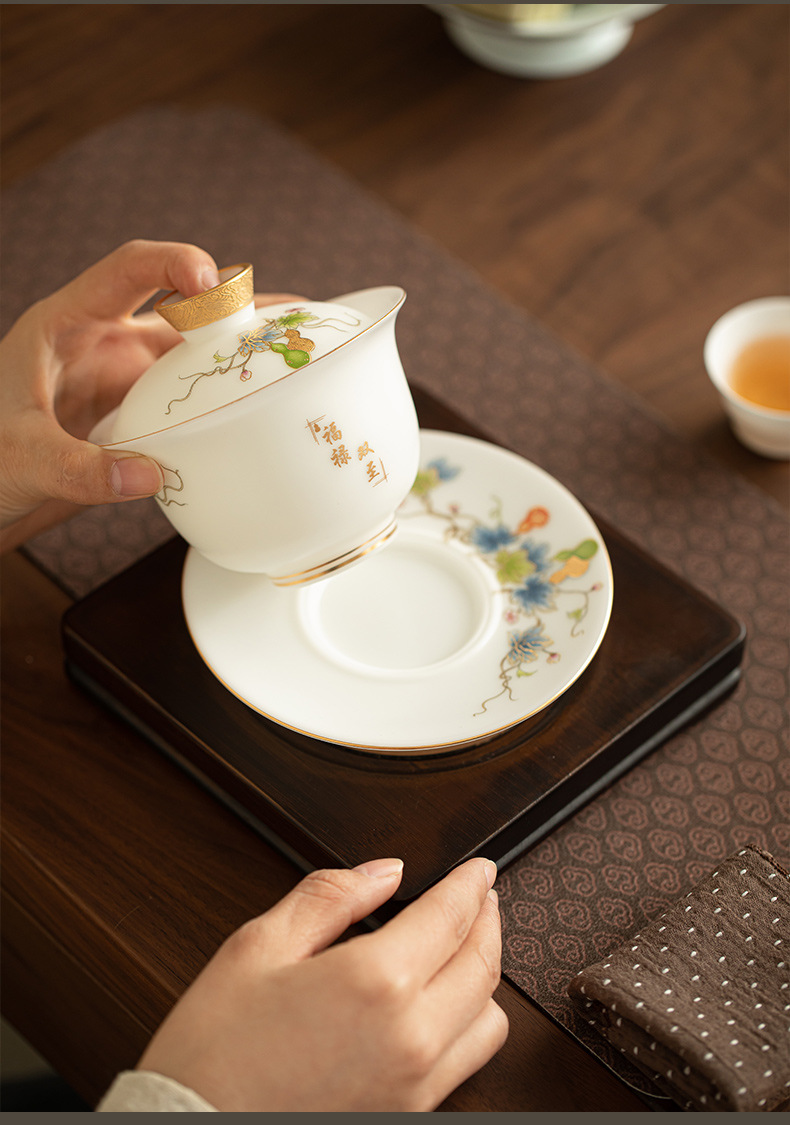 일반 불타는 양 뚱뚱한 옥 도자기 아이스 Kind 골드 Sancai 커버 그릇 세라믹 차 세트 티 그릇 푹신한 차 그릇 풀루 쿵푸 차 세트