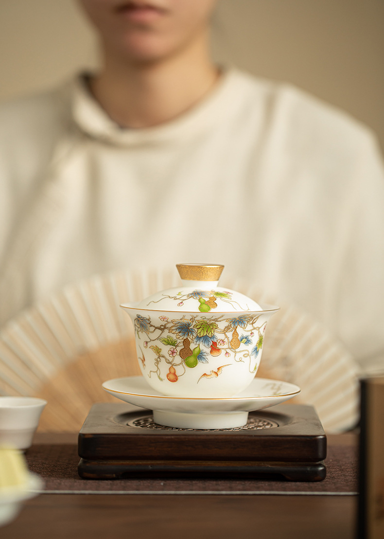 일반 불타는 양 뚱뚱한 옥 도자기 아이스 Kind 골드 Sancai 커버 그릇 세라믹 차 세트 티 그릇 푹신한 차 그릇 풀루 쿵푸 차 세트스토어 가기