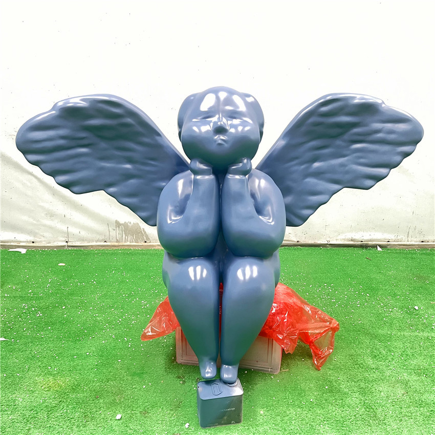 유리 섬유 강화 플라스틱 조각 만화 그림 조각 플라스틱 날개 뚱뚱한 소녀 인형 무지개 천사 수공예 바닥 장식품