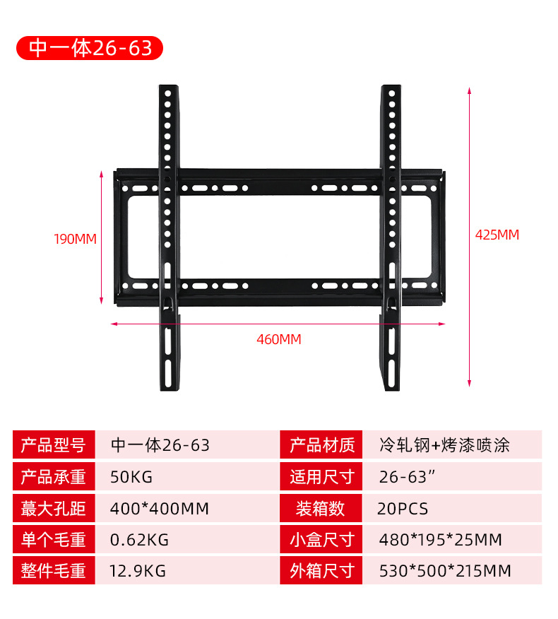 40-80 인치 TV 통합 옷걸이 냉간 압연 스틸 TV 프레임 벽 교수형 모니터 브래킷 회의실 교수형 랙