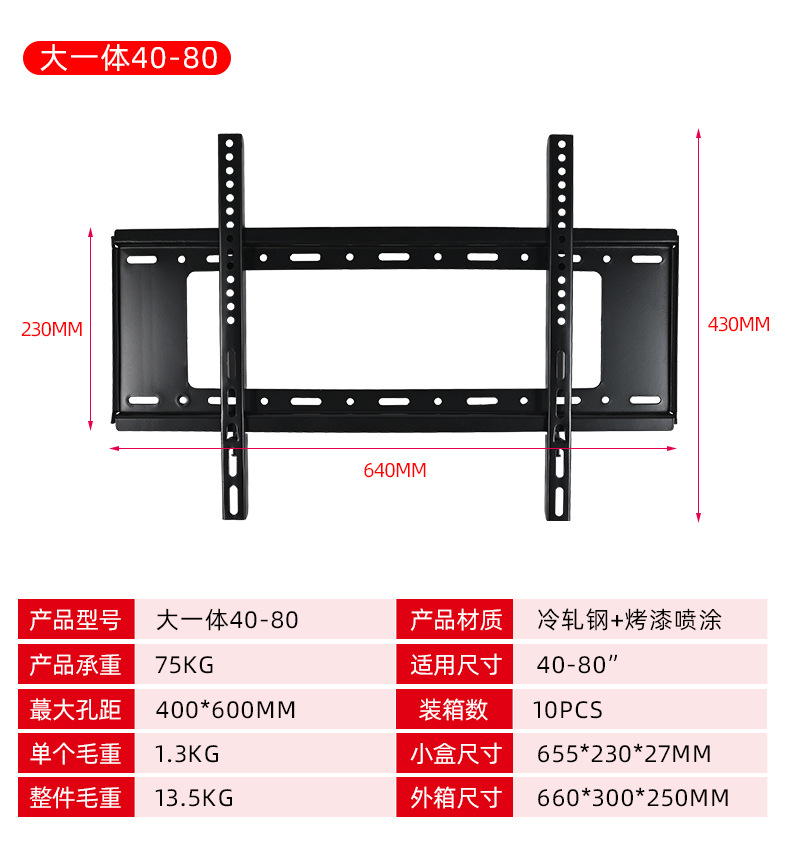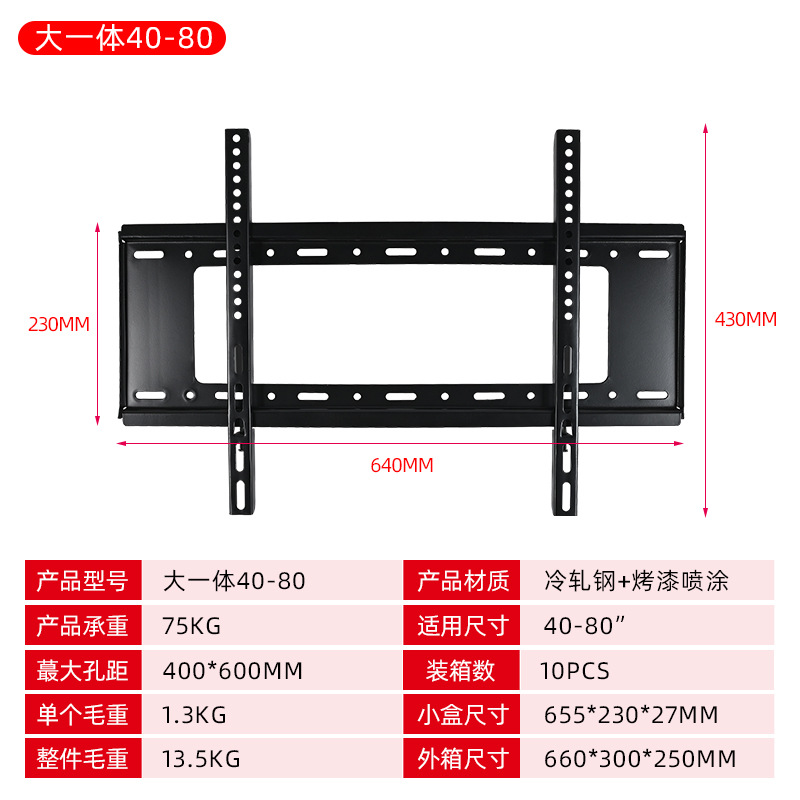 40-80 인치 TV 통합 옷걸이 냉간 압연 스틸 TV 프레임 벽 교수형 모니터 브래킷 회의실 교수형 랙스토어 가기