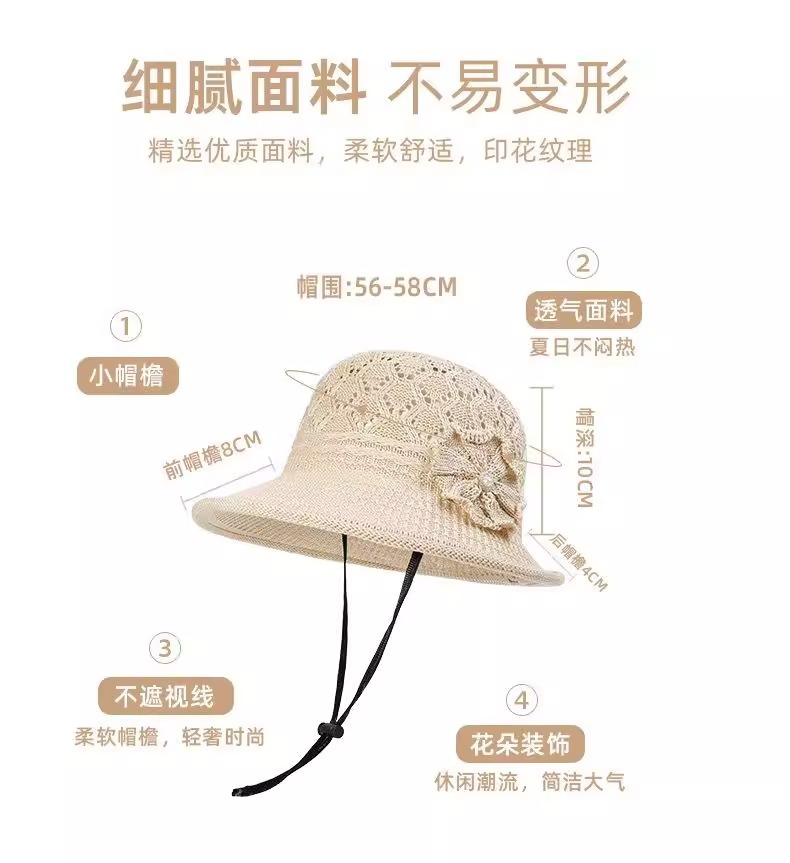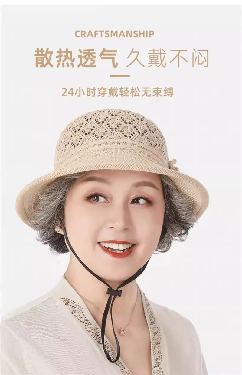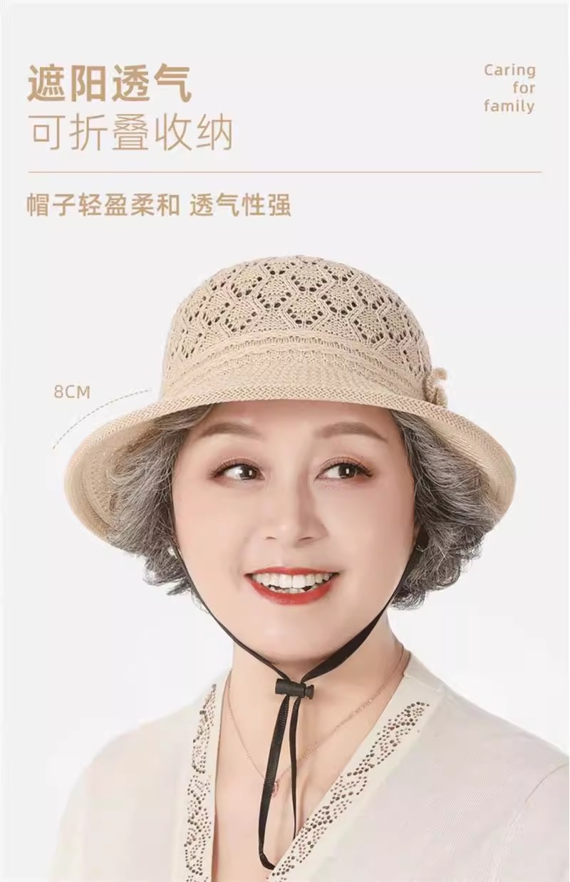 어머니의 선 스크린 모자 여름 여성의 통기성 노부인의 차가운 모자 분지 얇은 중년 노인 할머니의 태양 모자