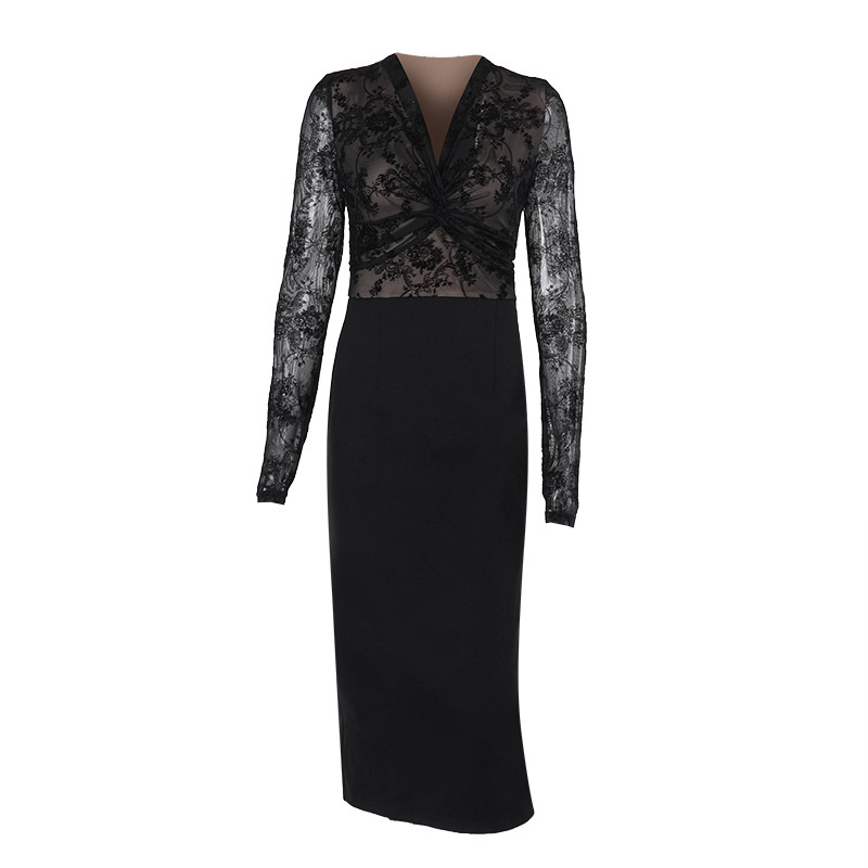 엘리야 새로운 왕실 자매 순수한 욕망 섹시한 슬림 핏 레이스 원피스 쉬스 스플릿 XS24395 원피스