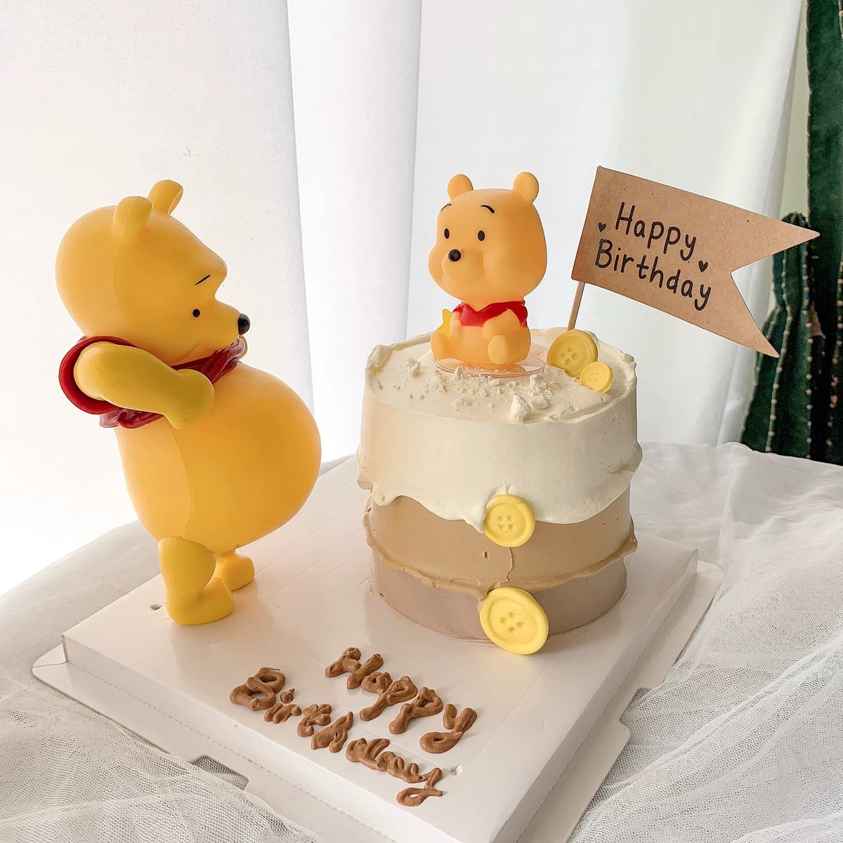 큰 배 위니 푸들 케이크 장식 귀여운 큰 배 임신 한 어머니 생일 굽기 원피스 플러그인스토어 가기