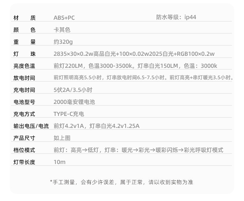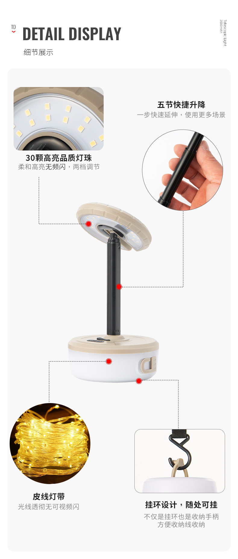 • 다기능 캠핑등 [2000mA 10m 컬러 따뜻한 분위기 조명]