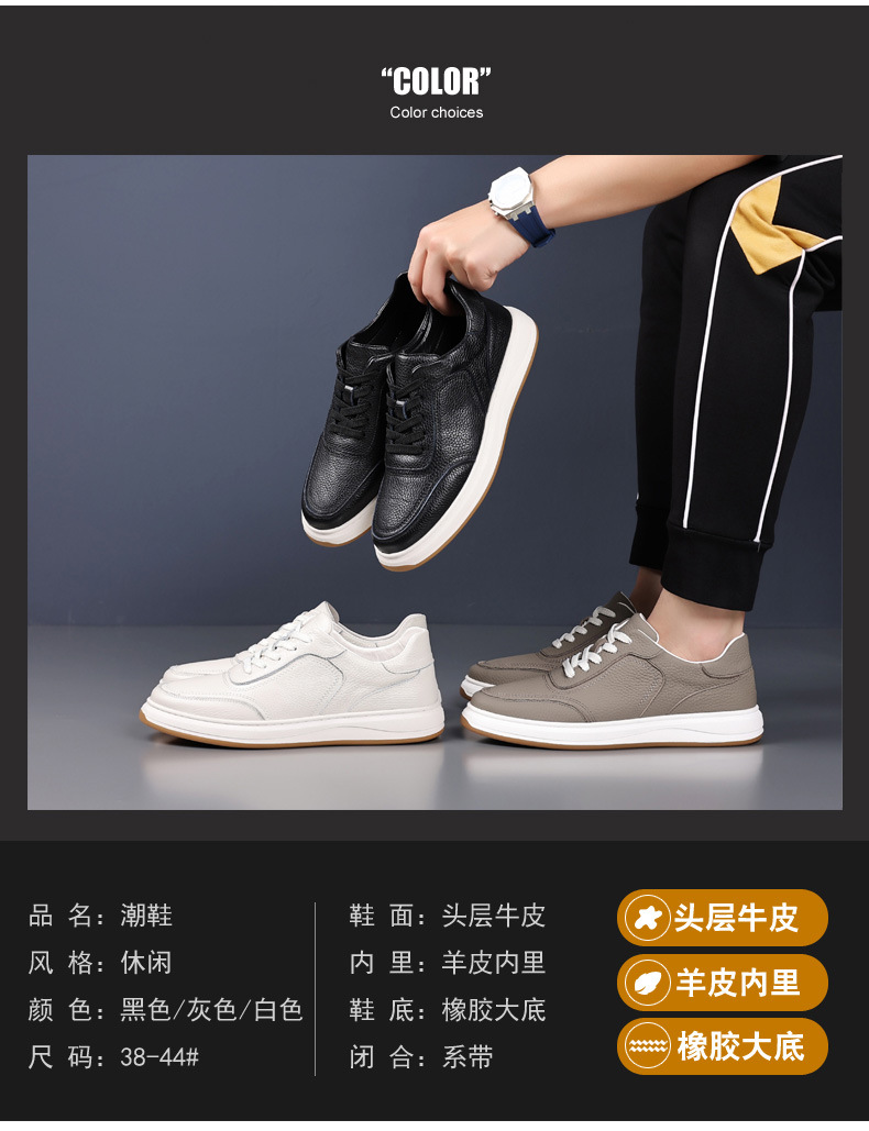 가죽의 첫 번째 레이어 2024 가을 새로운 남성 캐주얼 신발 통기성 남성 작은 흰색 신발 패션 남성 신발스토어 가기