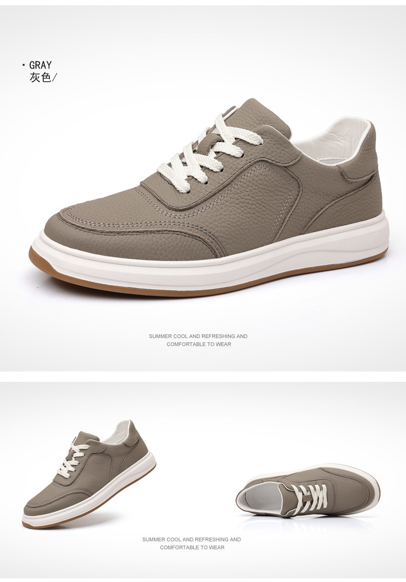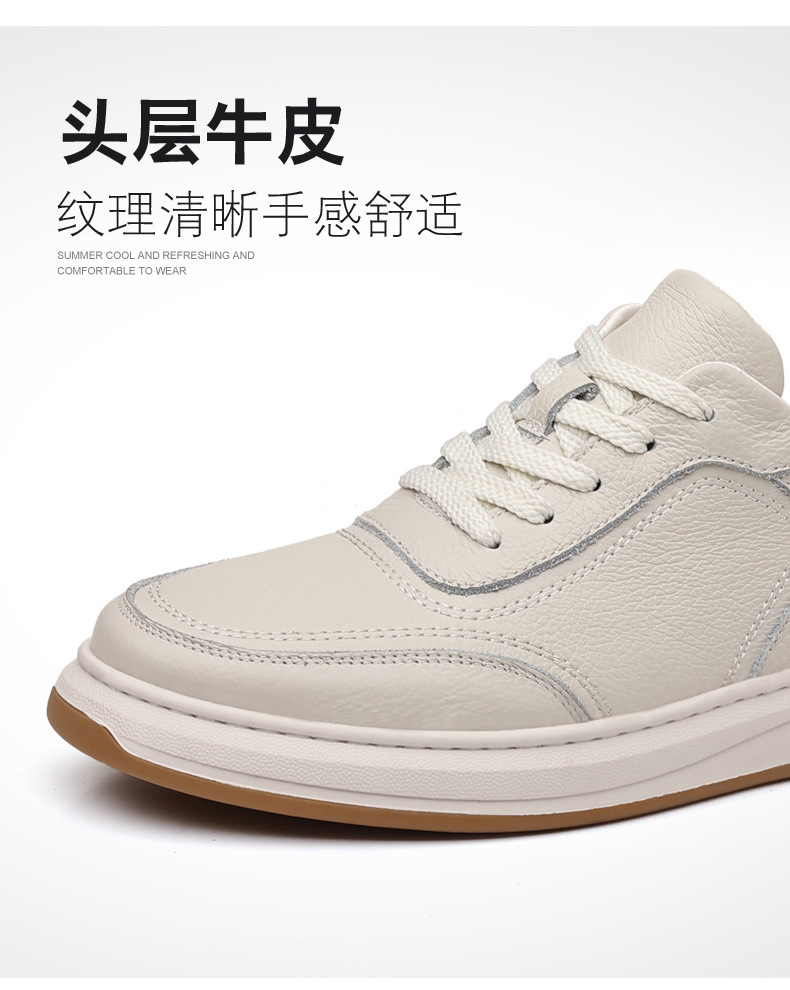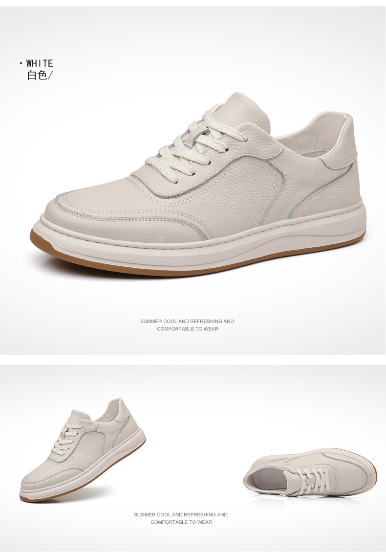 가죽의 첫 번째 레이어 2024 가을 새로운 남성 캐주얼 신발 통기성 남성 작은 흰색 신발 패션 남성 신발
