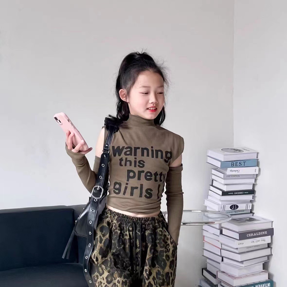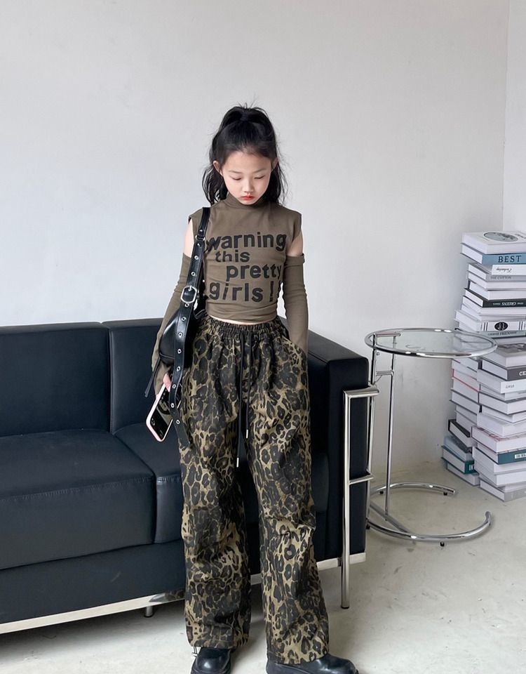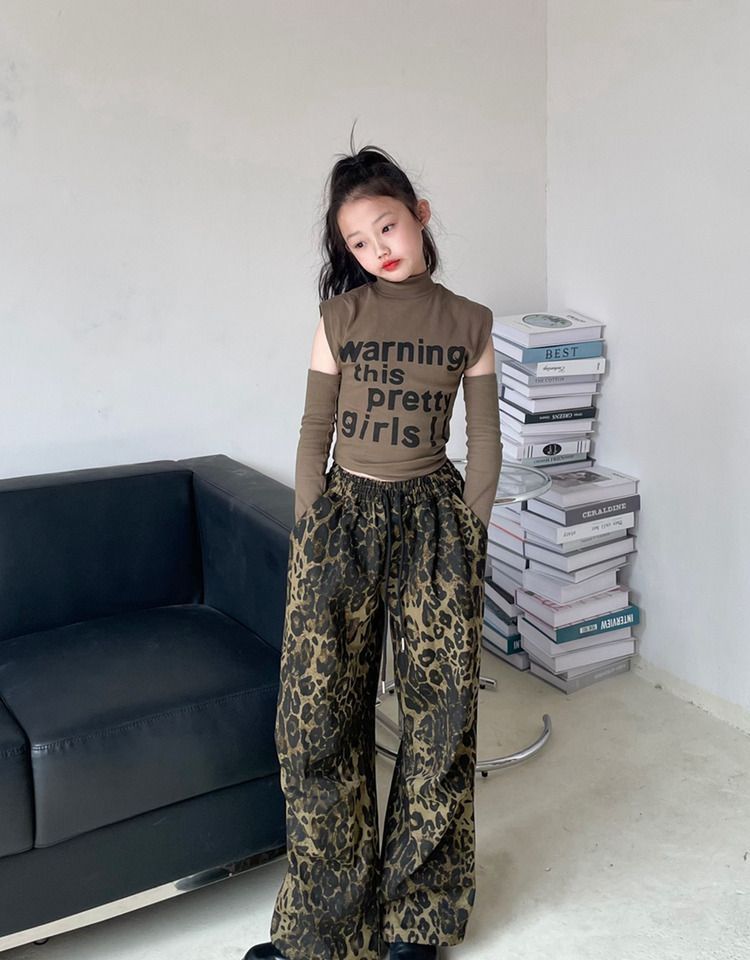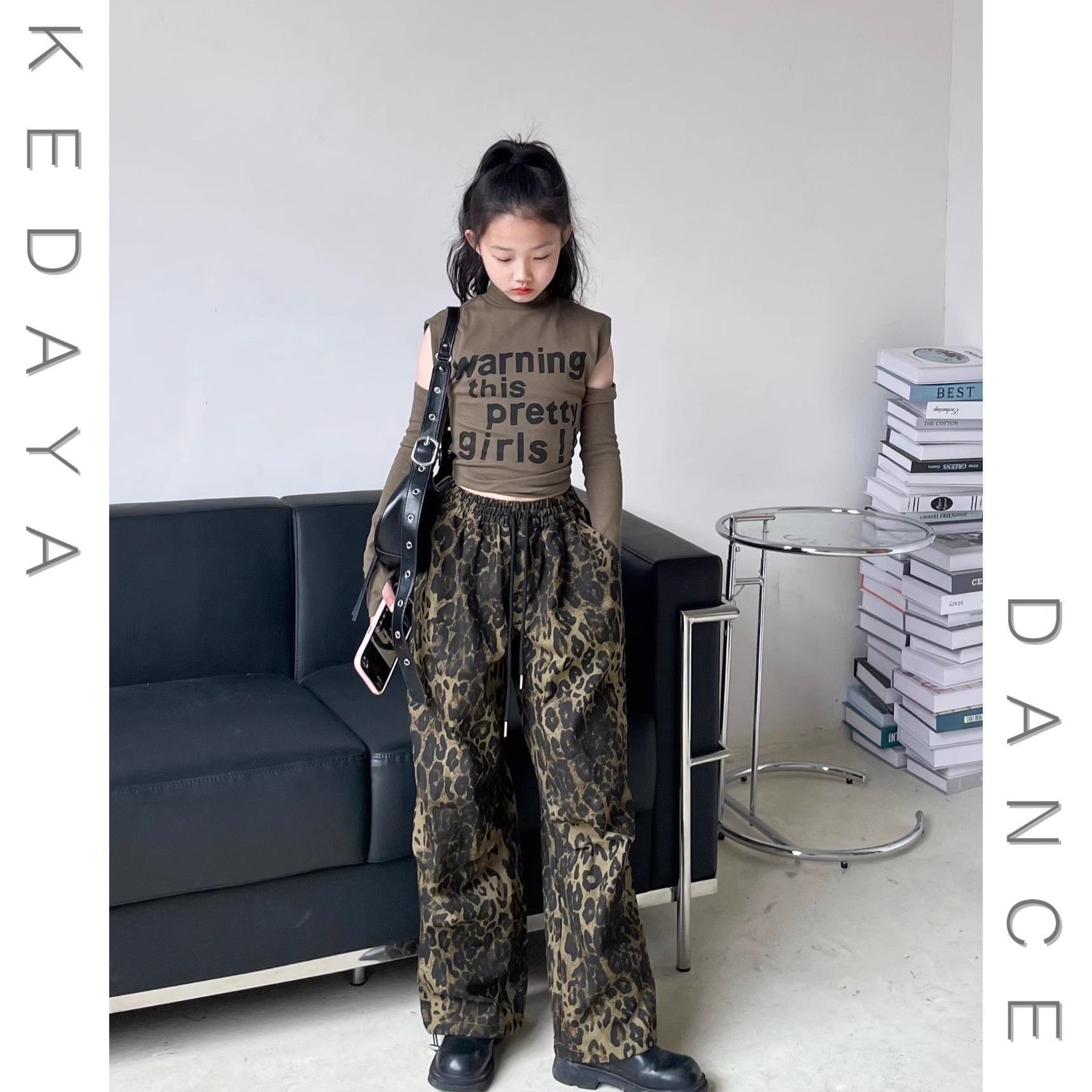 봄과 가을 새로운 아동복 달콤한 쿨 걸스 한국 슬림 핏 티셔츠 레오파드 무늬 크레인 바지 어린이 재즈 댄스 공연 세트스토어 가기