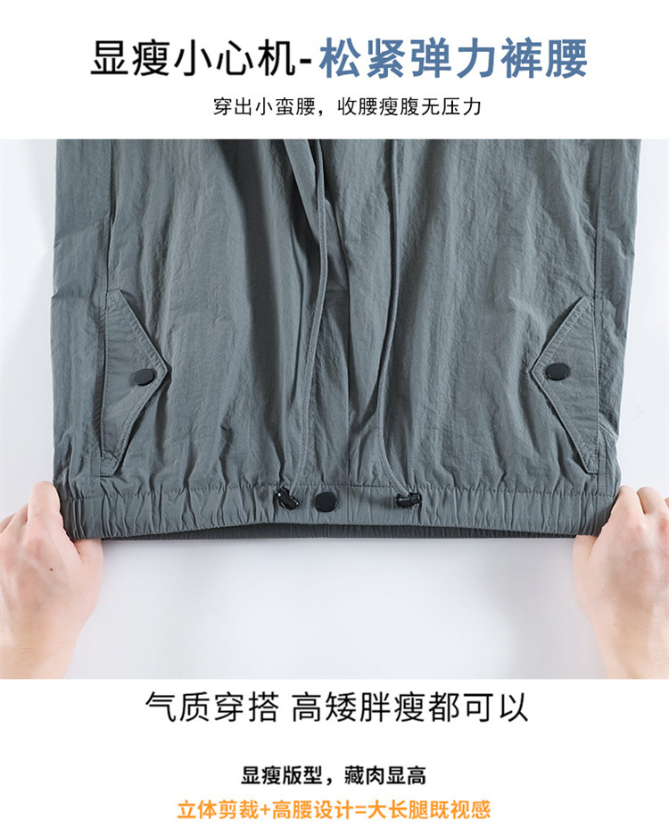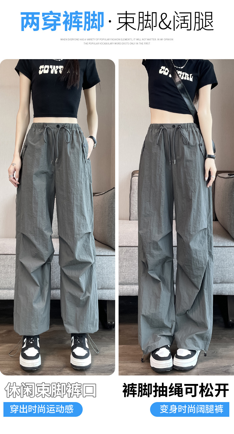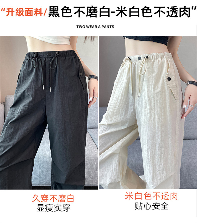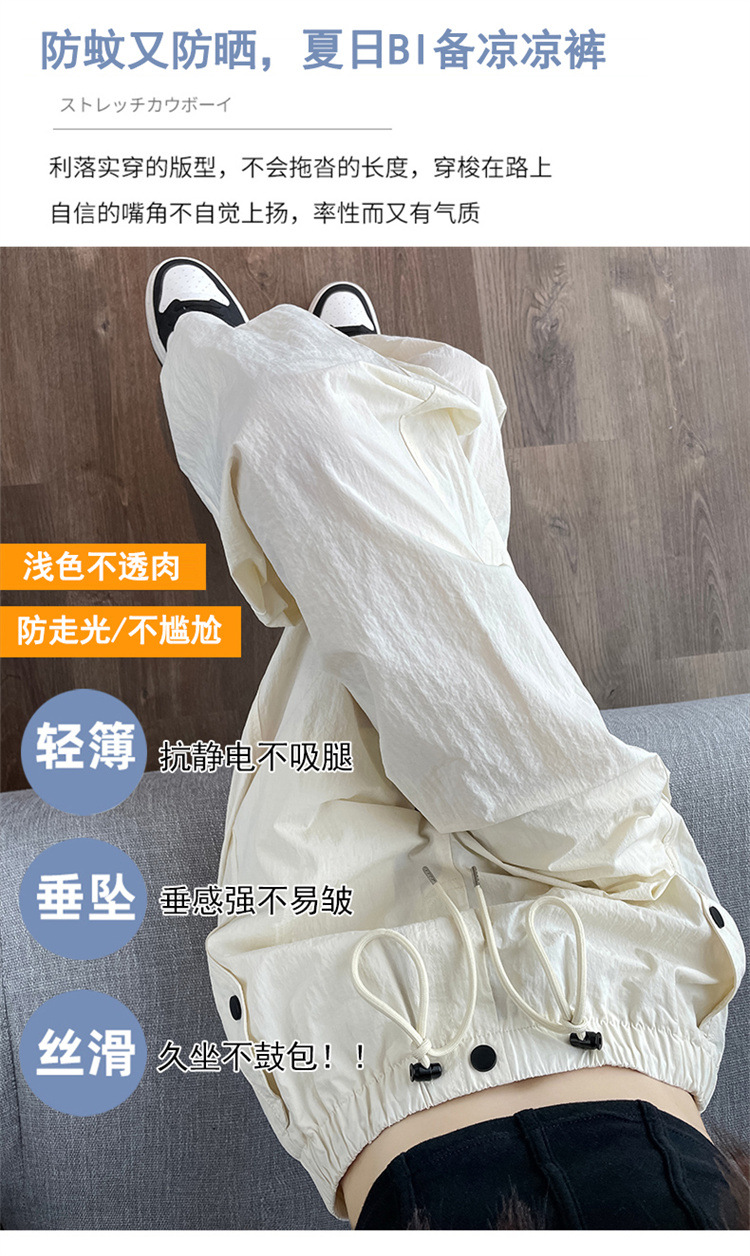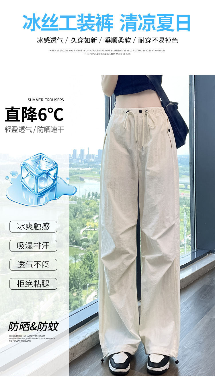 흰색 빠른 건조 작업복 여성 여름 미국식 얇은 다리 발가락 아이스 실크 스포츠 바지 느슨한 캐주얼 클라이밍 와이드 레그 바지