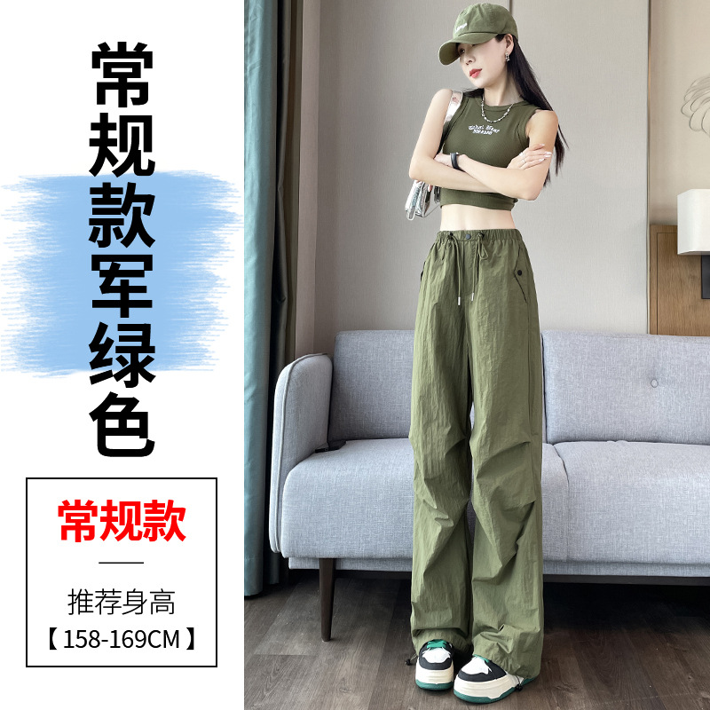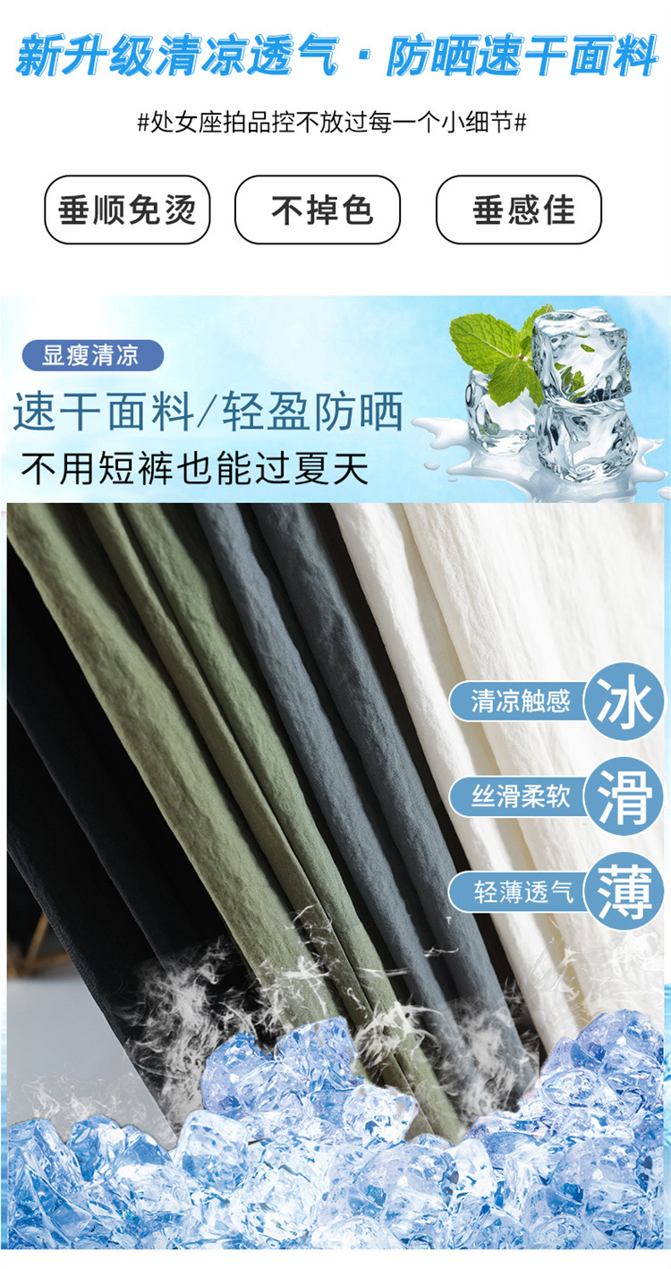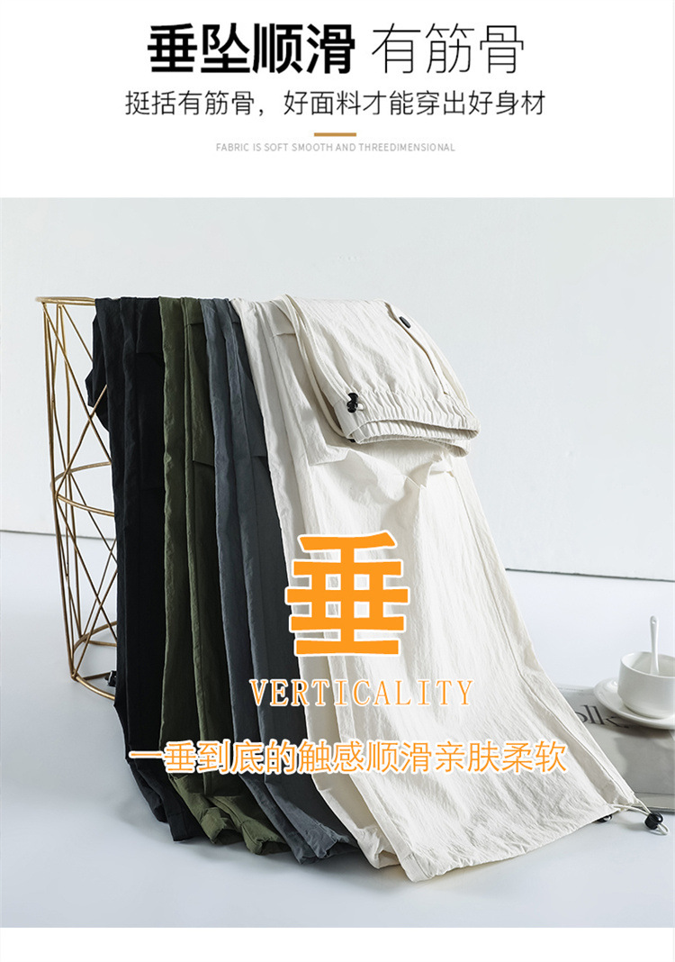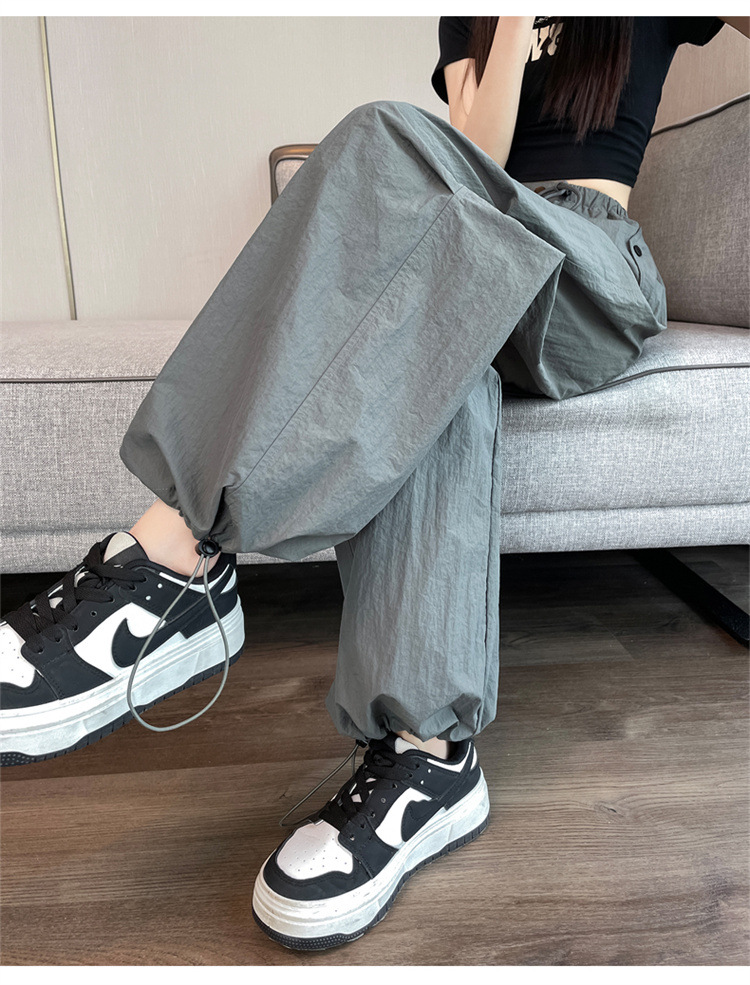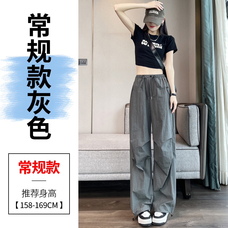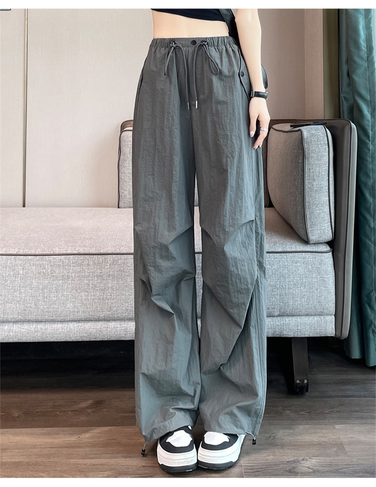 흰색 빠른 건조 작업복 여성 여름 미국식 얇은 다리 발가락 아이스 실크 스포츠 바지 느슨한 캐주얼 클라이밍 와이드 레그 바지