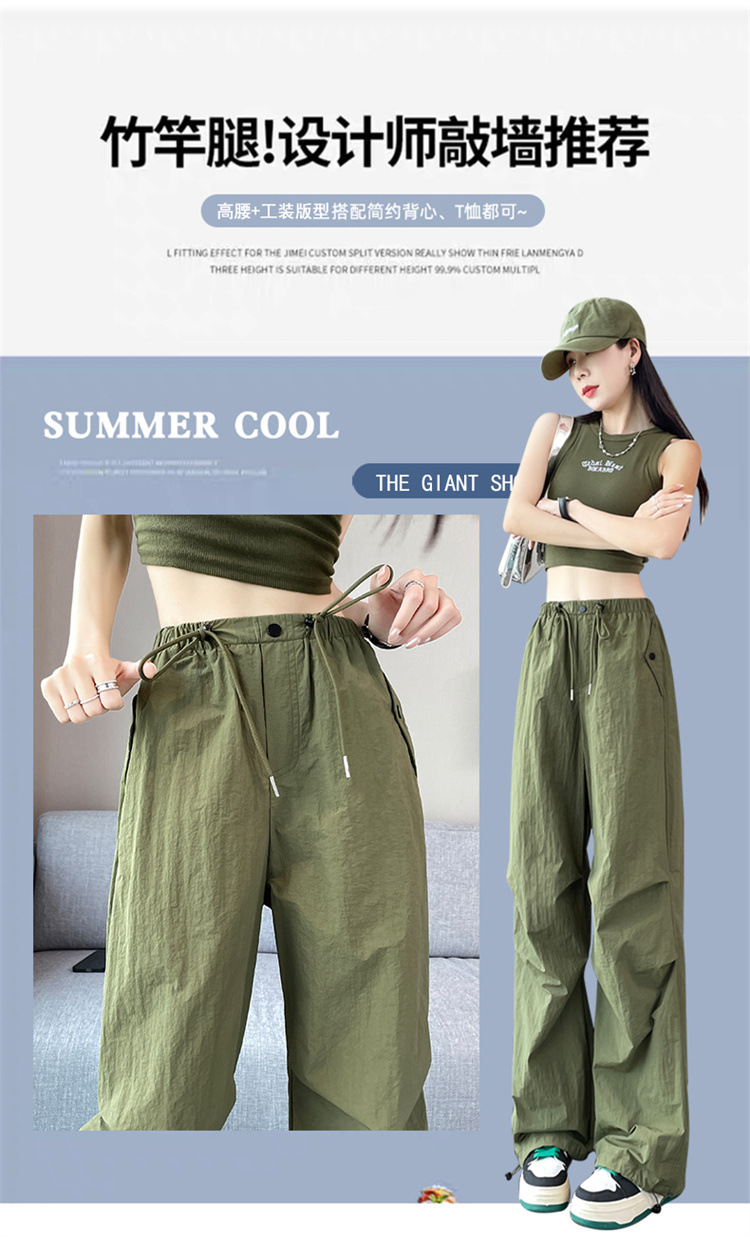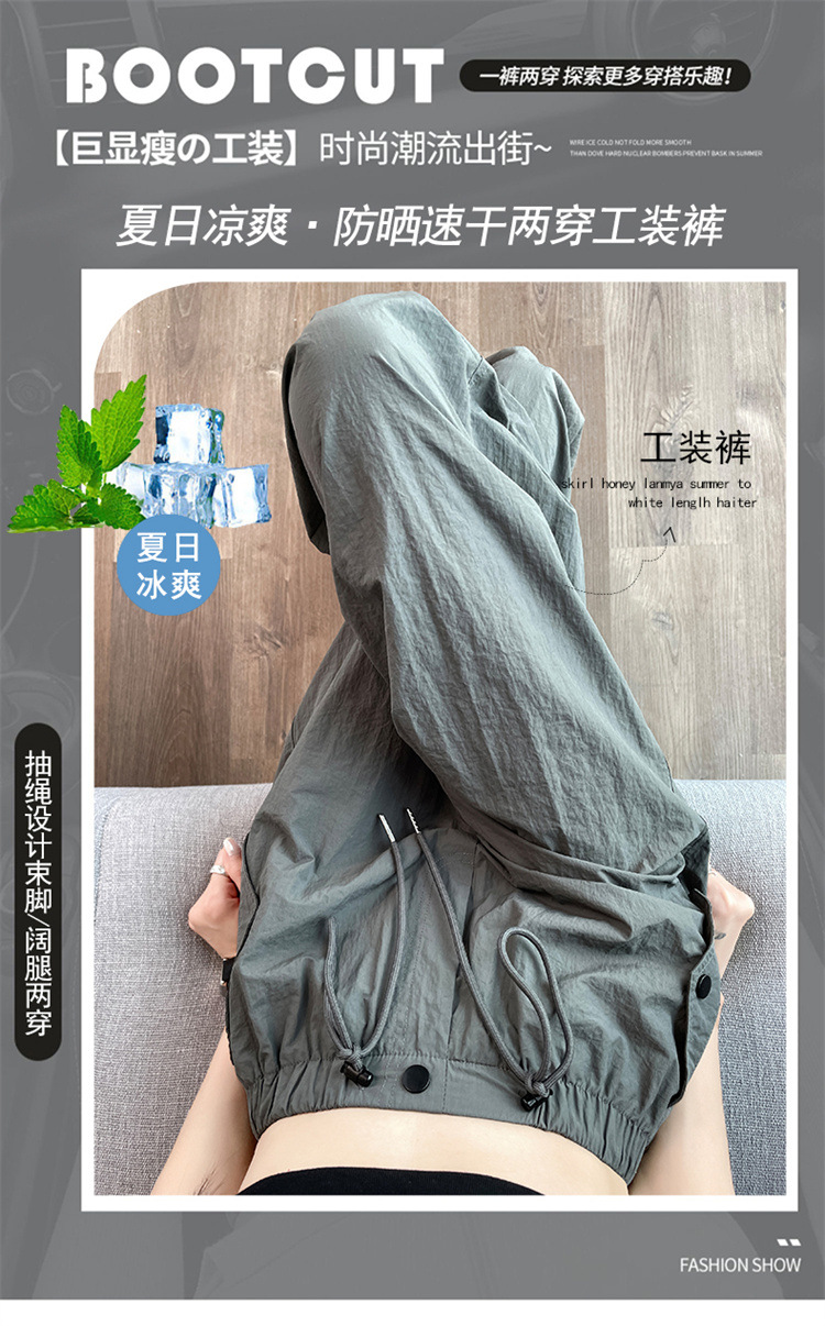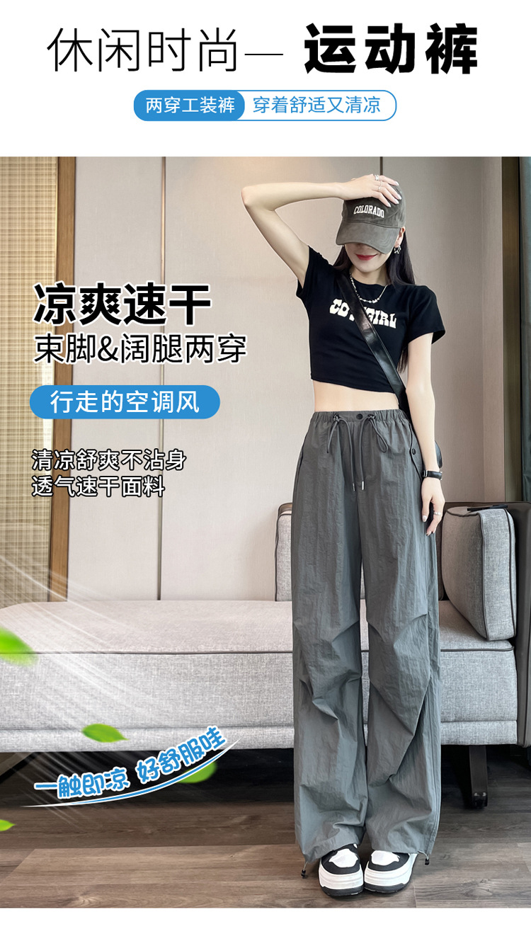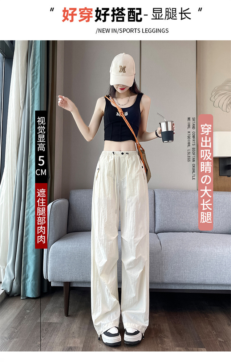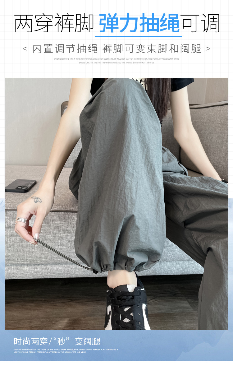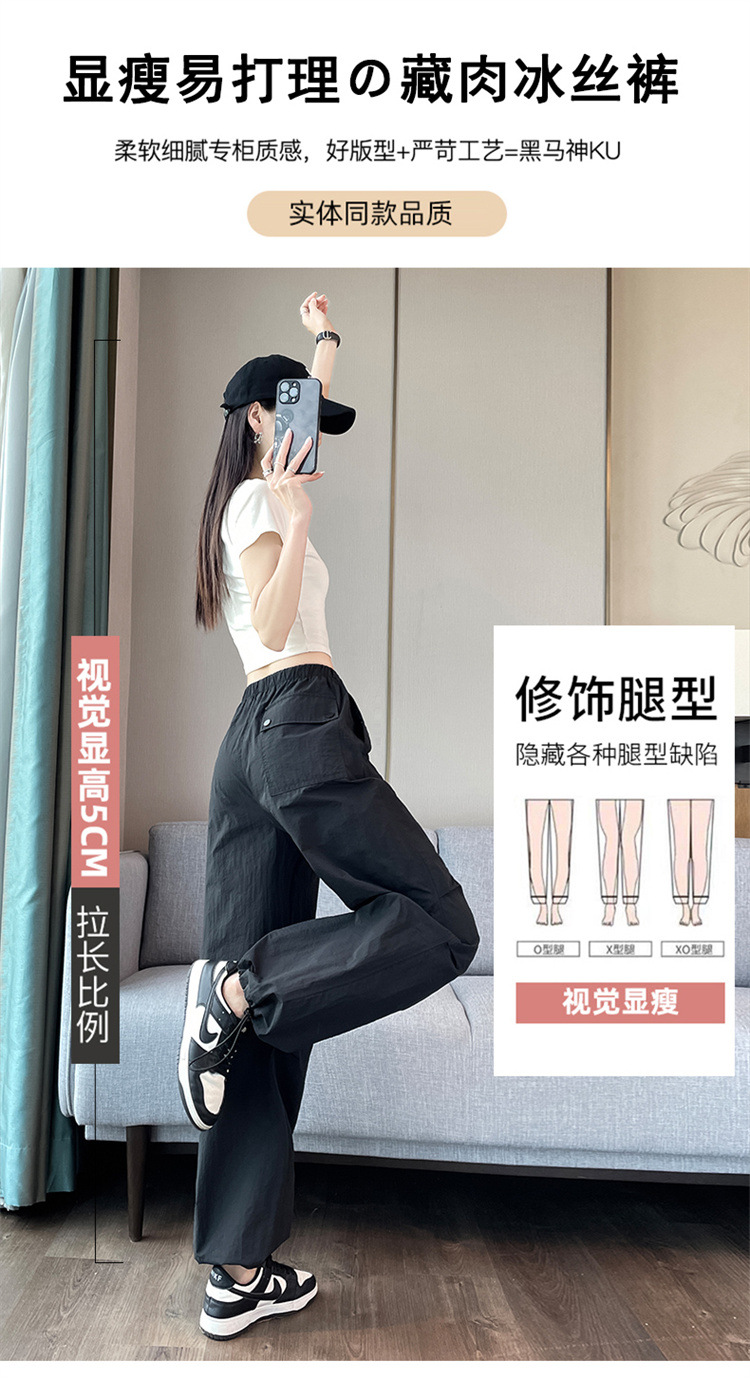 흰색 빠른 건조 작업복 여성 여름 미국식 얇은 다리 발가락 아이스 실크 스포츠 바지 느슨한 캐주얼 클라이밍 와이드 레그 바지스토어 가기