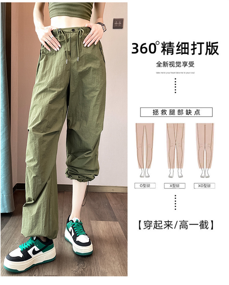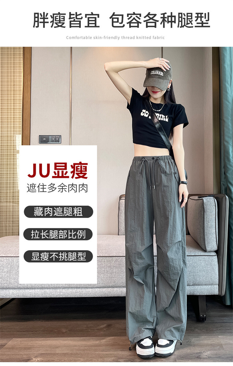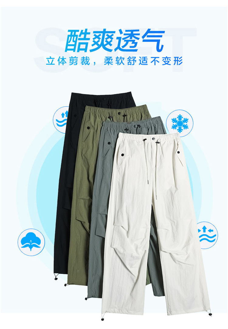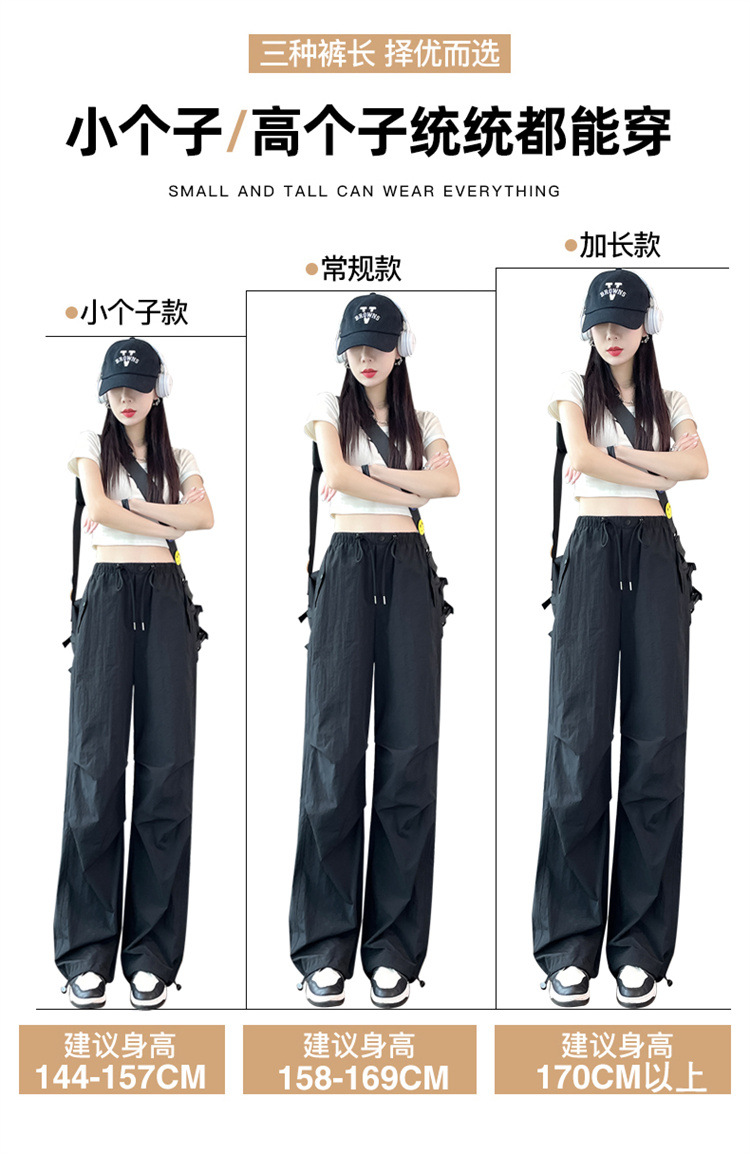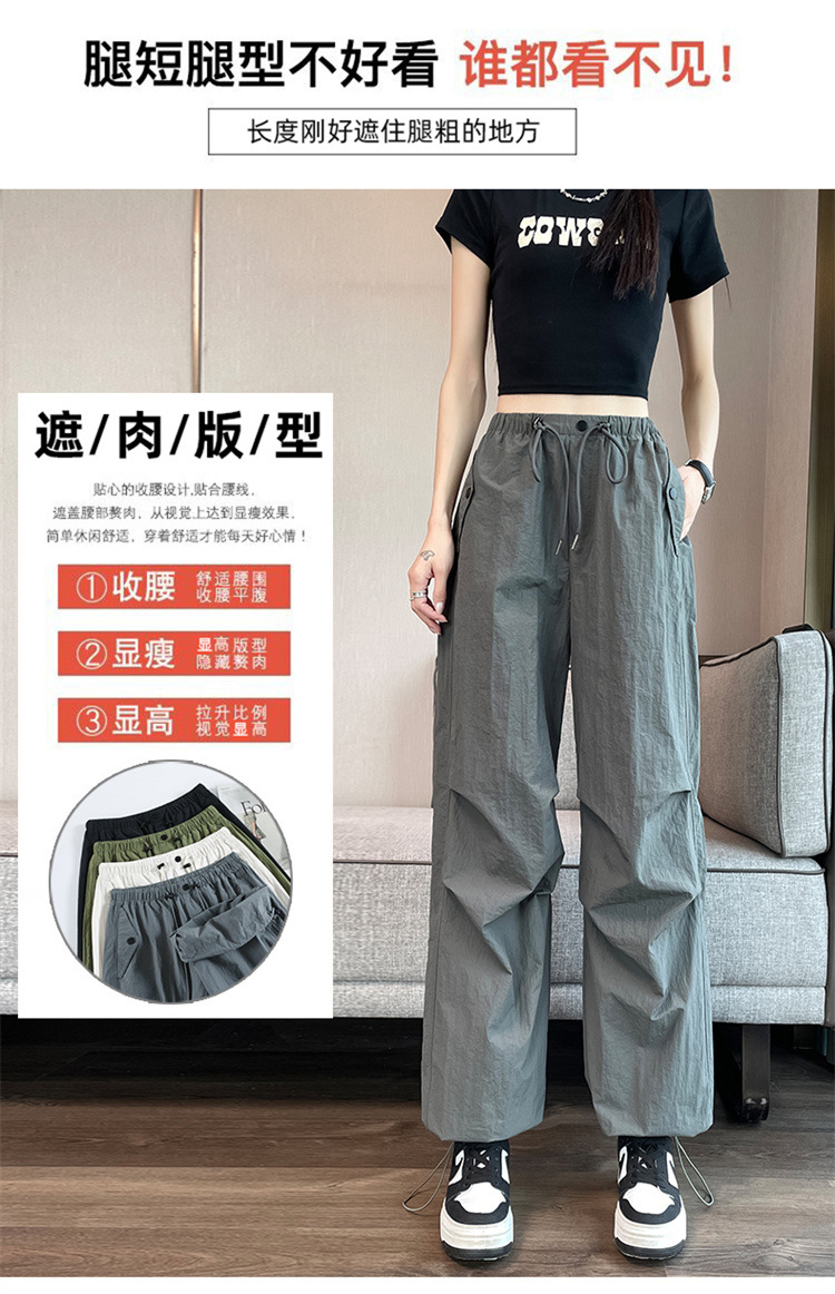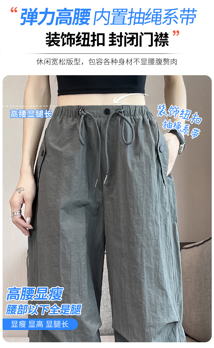 흰색 빠른 건조 작업복 여성 여름 미국식 얇은 다리 발가락 아이스 실크 스포츠 바지 느슨한 캐주얼 클라이밍 와이드 레그 바지스토어 가기