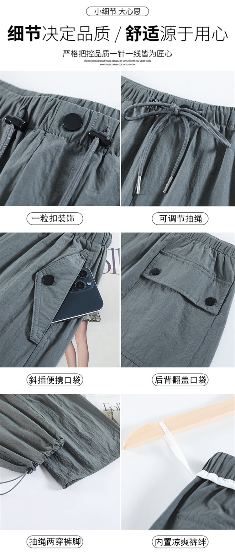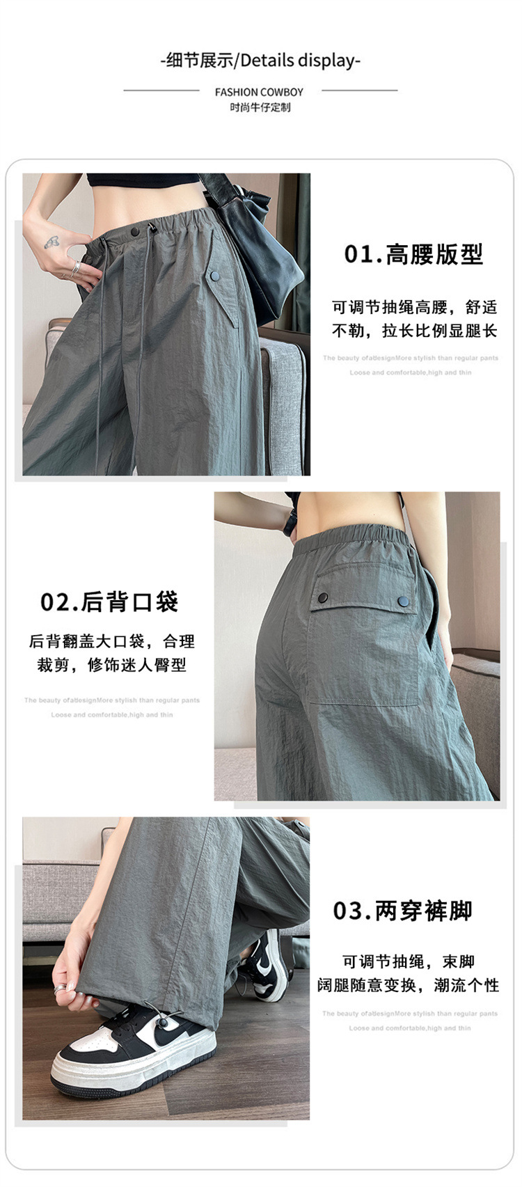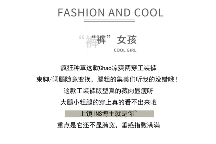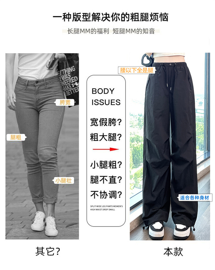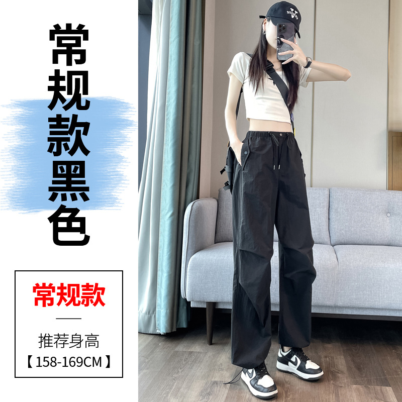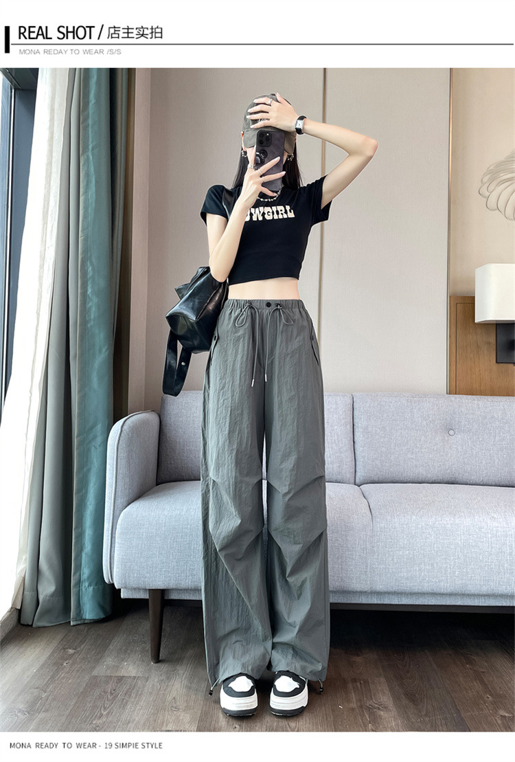 흰색 빠른 건조 작업복 여성 여름 미국식 얇은 다리 발가락 아이스 실크 스포츠 바지 느슨한 캐주얼 클라이밍 와이드 레그 바지스토어 가기