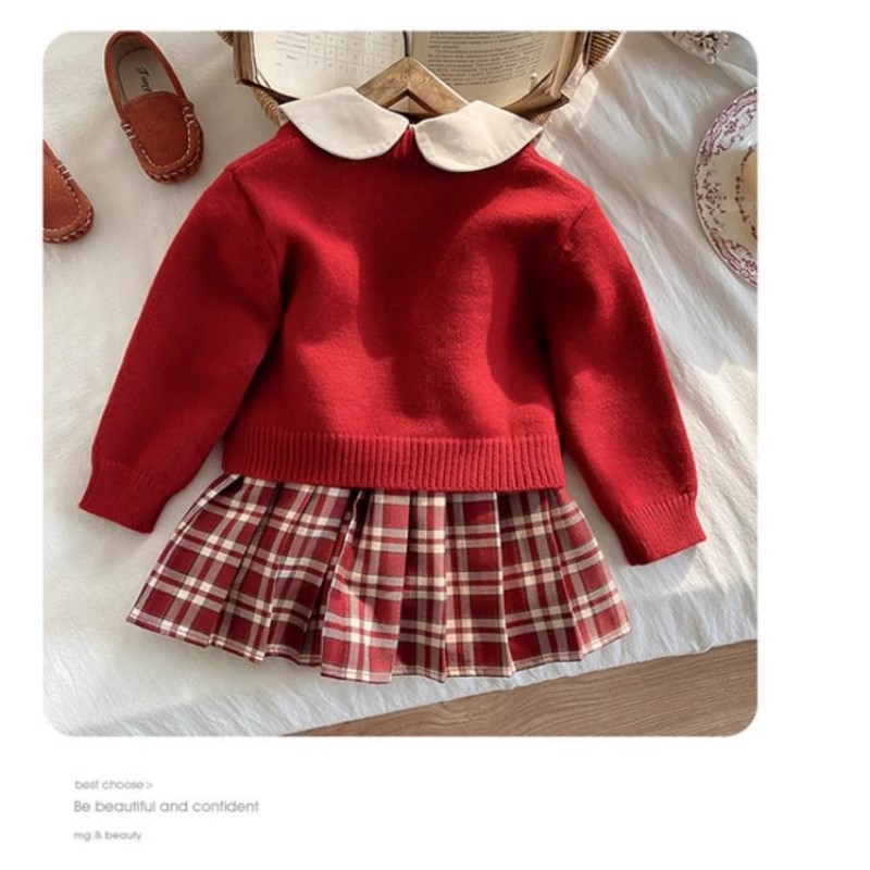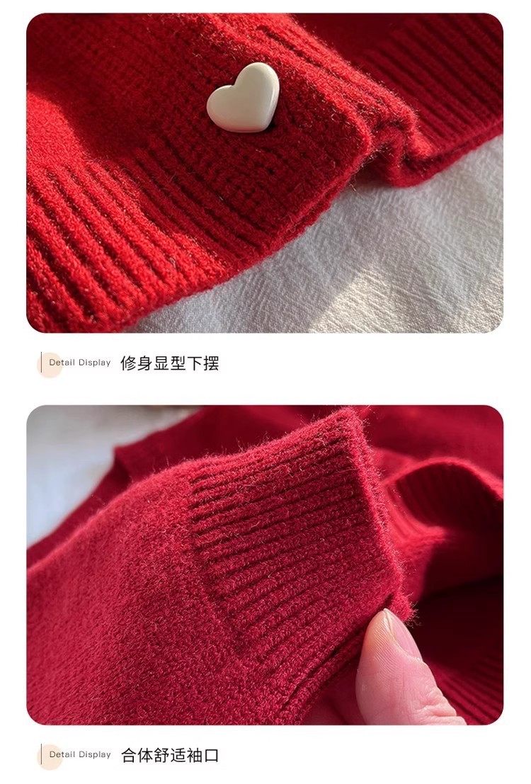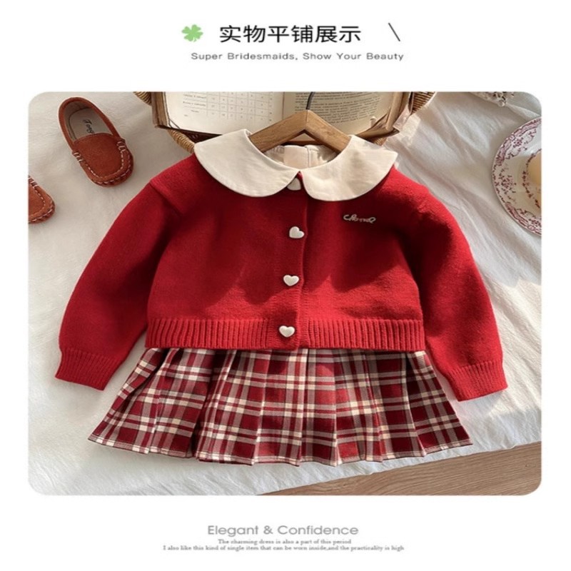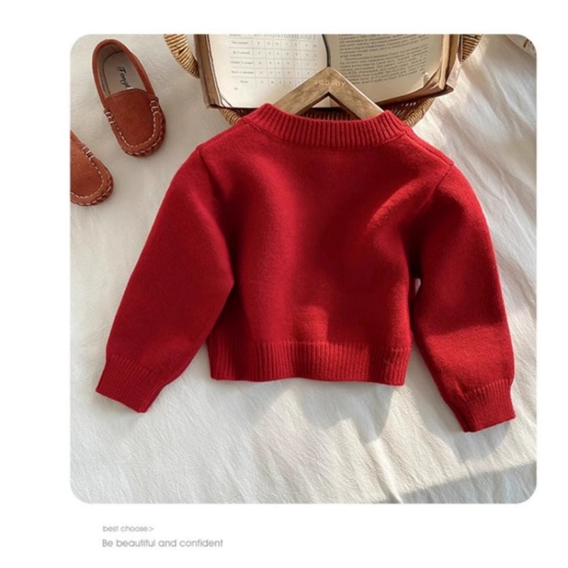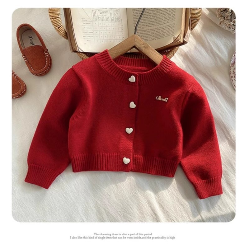 소녀의 봄과 가을 새로운 서양식 빨간 스웨터 카디건 2025 새로운 사랑 버튼 니트 코트 베이비스토어 가기