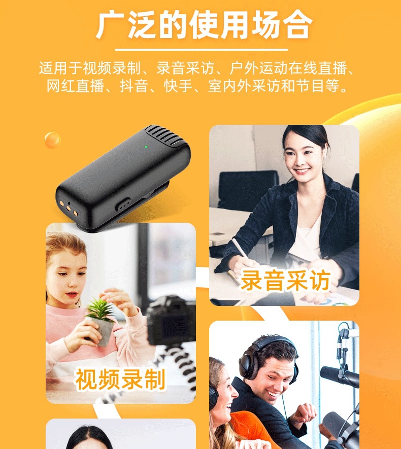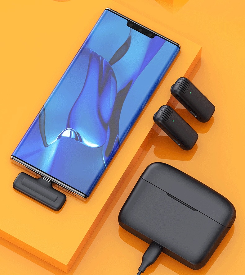 국경 간 폭발 무선 1 대 2 칼라 클립 마이크 충전 창고 휴대 전화 라이브 야외 소음 감소 라디오 마이크
