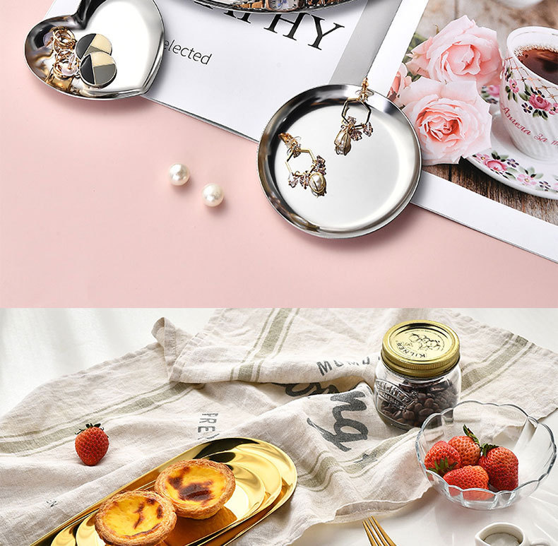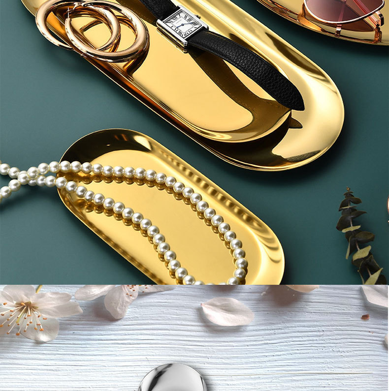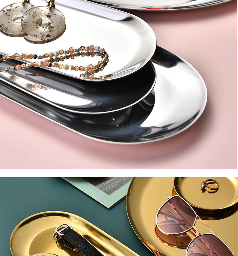 노르딕 인 타원형 트레이 스테인레스 스틸 골든 타원형 트레이 쥬얼리 딤섬 트레이 금속 홈 스토리지 트레이