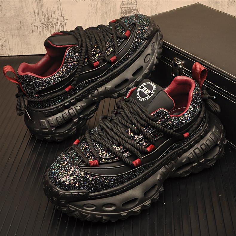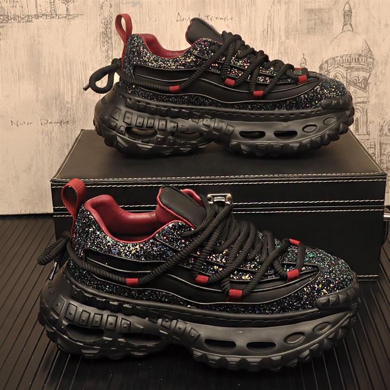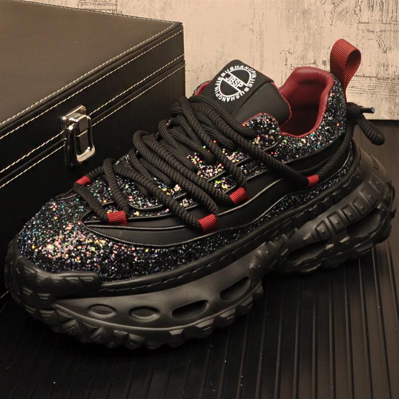 캐주얼 스포츠 남성 신발 두꺼운 단독 올 매치 토레 신발 틈새 디자이너 Sequin 패션 신발 블랙 사무라이 트렌디 신발 남성용