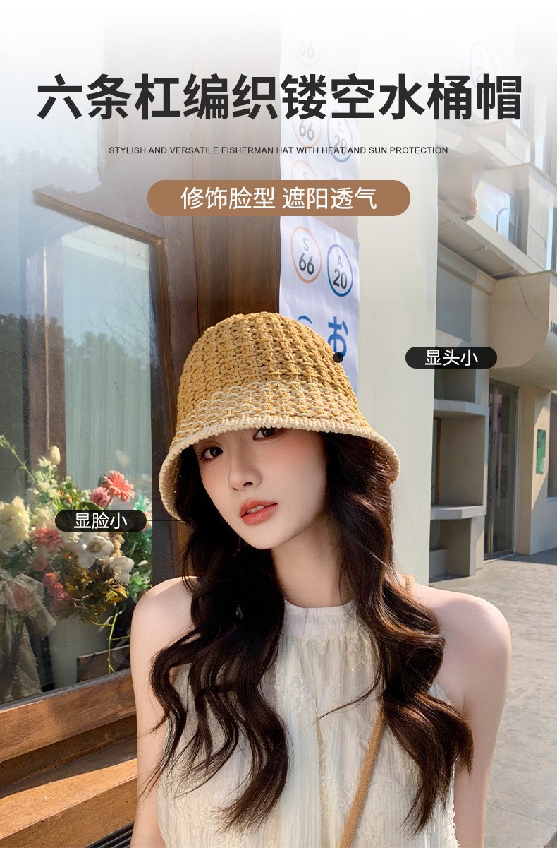 어부 모자 여성의 여름 2025 새로운 도착 할로우 짠 패션 올매치 분지 모자 얼굴 작은 양동이 모자 햇살