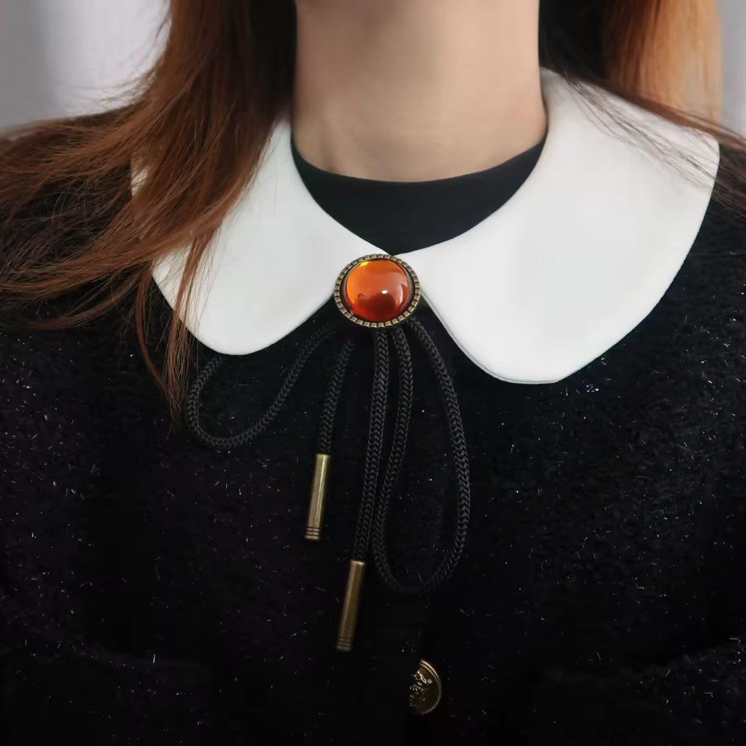 일본과 한국 간단한 다크 브라운 폴로 타이 올드 머니 스타일 캐주얼 남성 칼라 로프 성격 패션 틈새 보석 도매