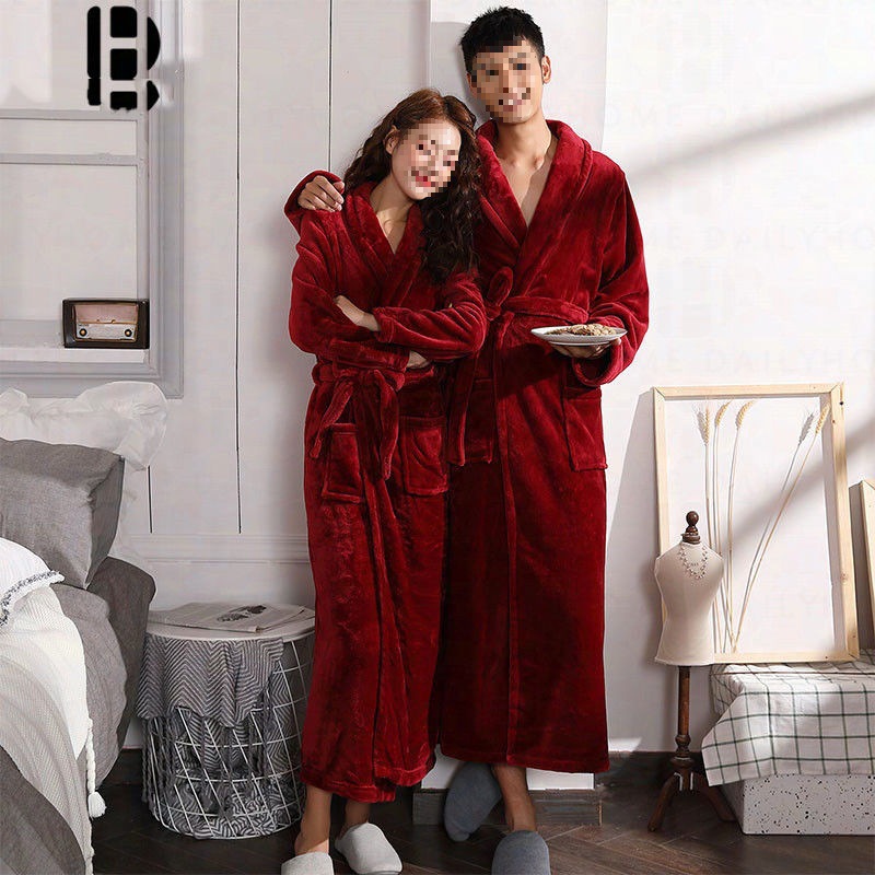 라인드 플란넬 커플 나이트가운 여성의 겨울 잠옷 목욕 가운 남자 가을 산호 양털스토어 가기
