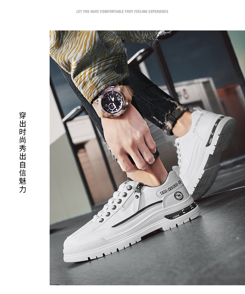 남성용 신발 2025 봄 새로운 도착 사이드 지퍼 남성용 캐주얼 가죽 신발 스포츠 플랫 작은 흰색 유행 운동화