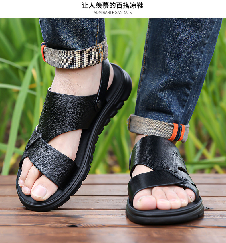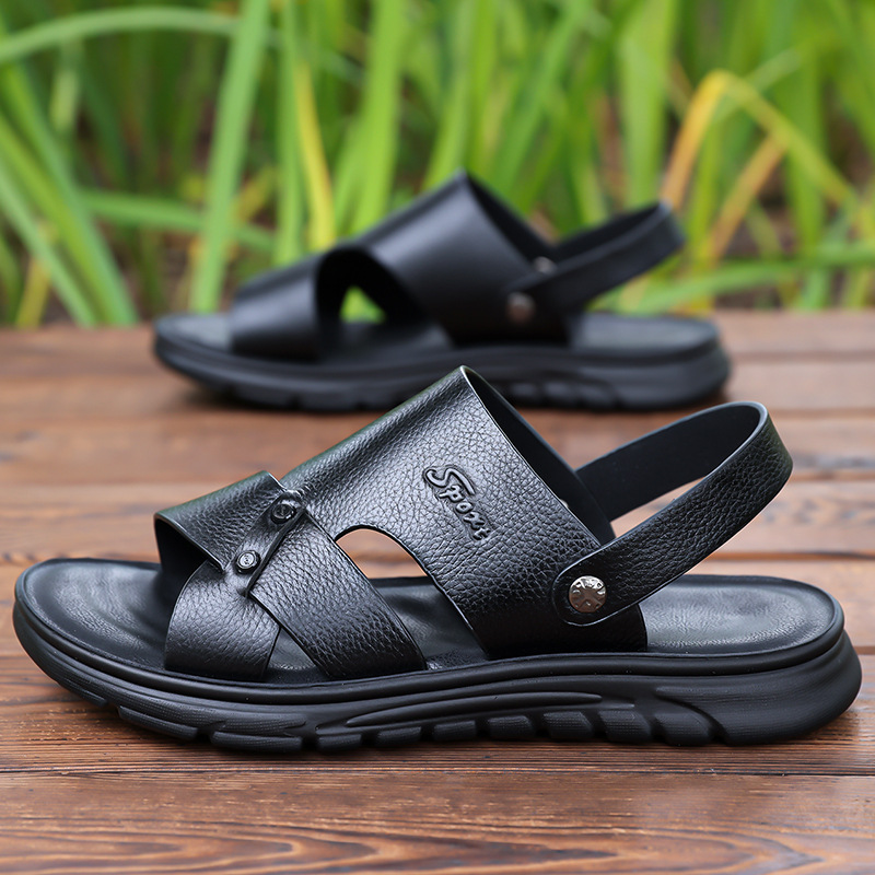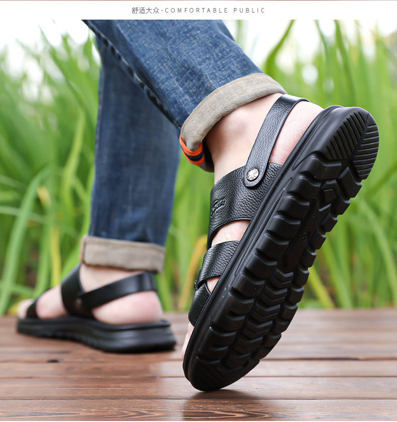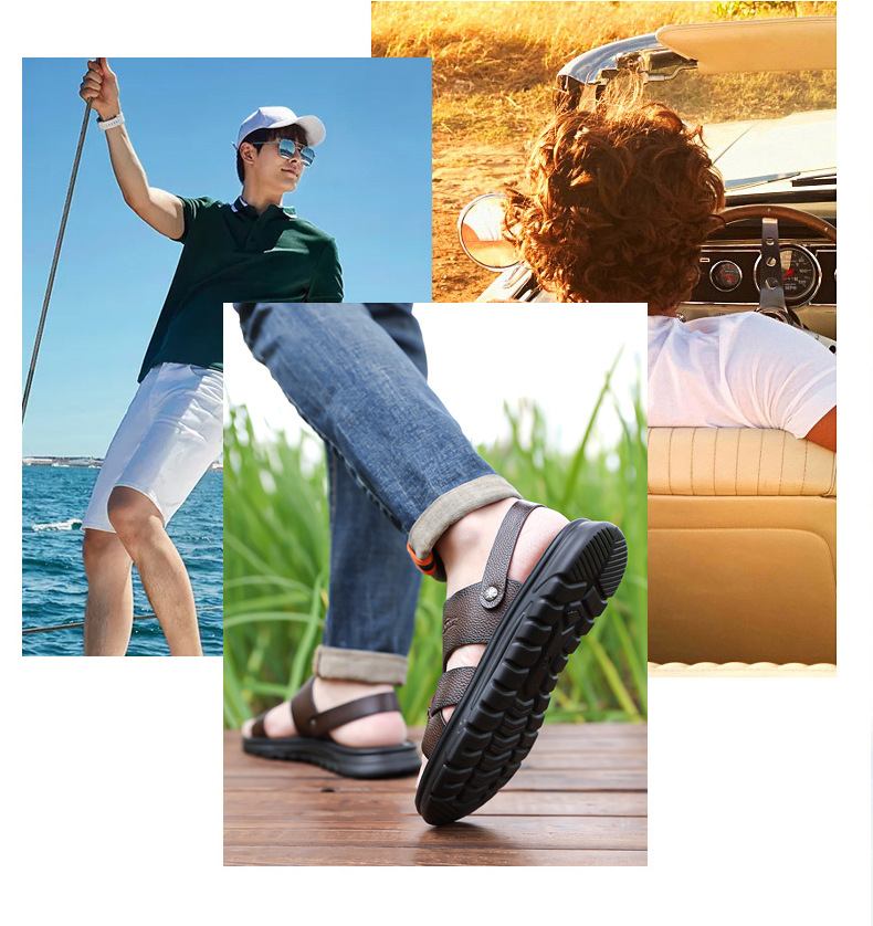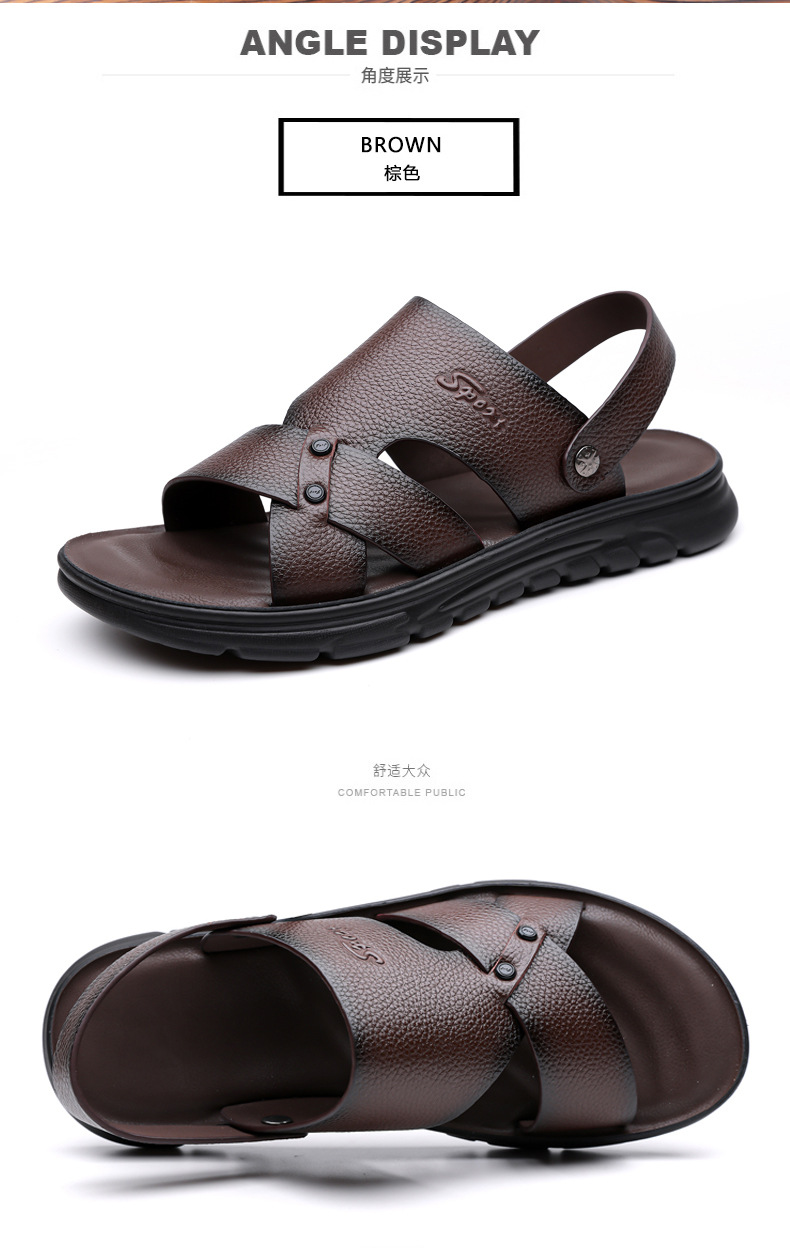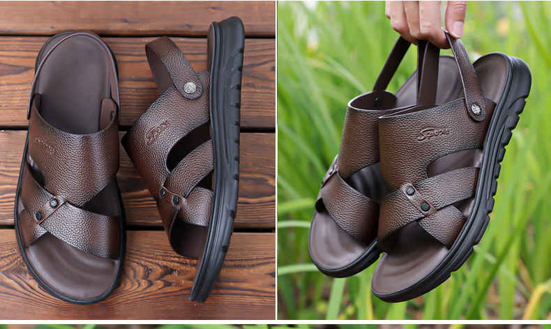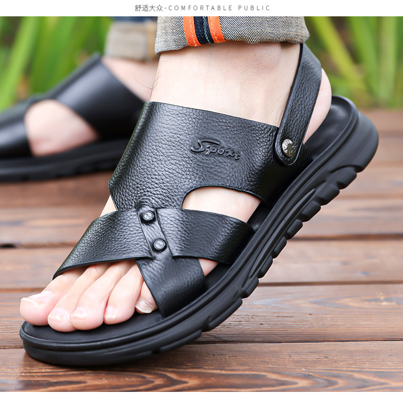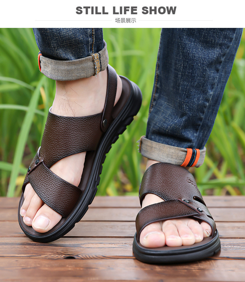 샌들 남성용 캐주얼 비치 슈즈 하이 엔드 가죽 아빠 야외 운전 가죽 경량 미끄럼 통기성 샌들스토어 가기