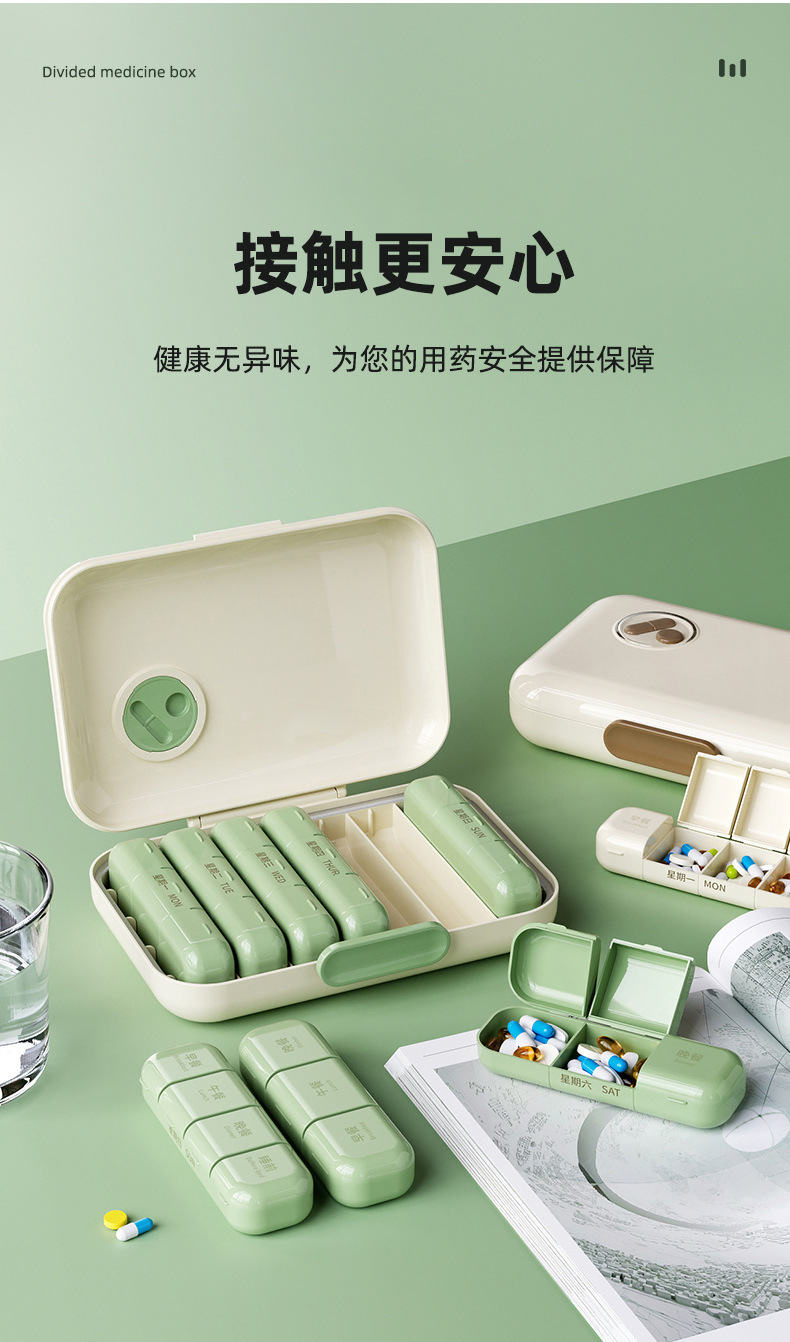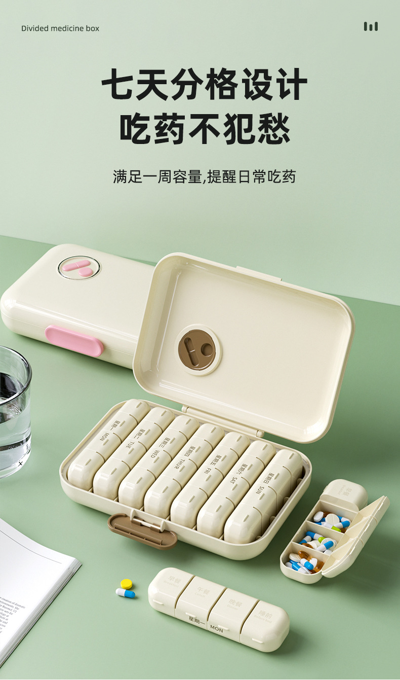약 상자 일주일에 7 일 휴대용 작은 약 상자 약 알림 약 상자 밀봉 방습 3 식 약 상자