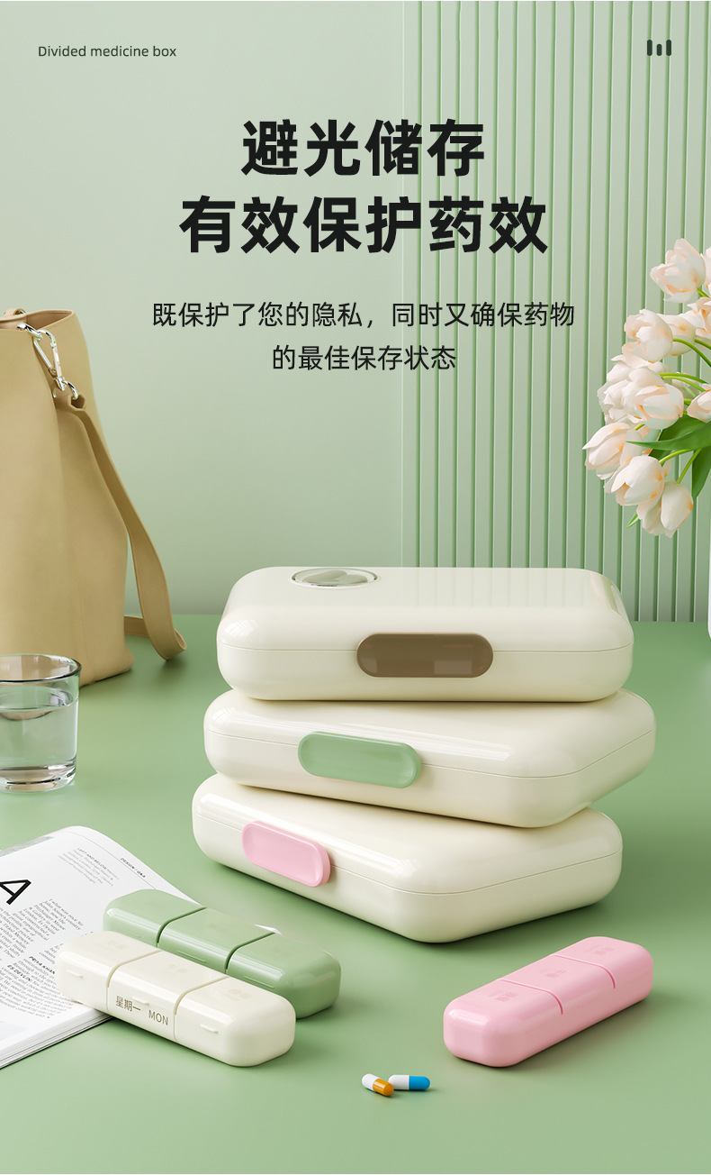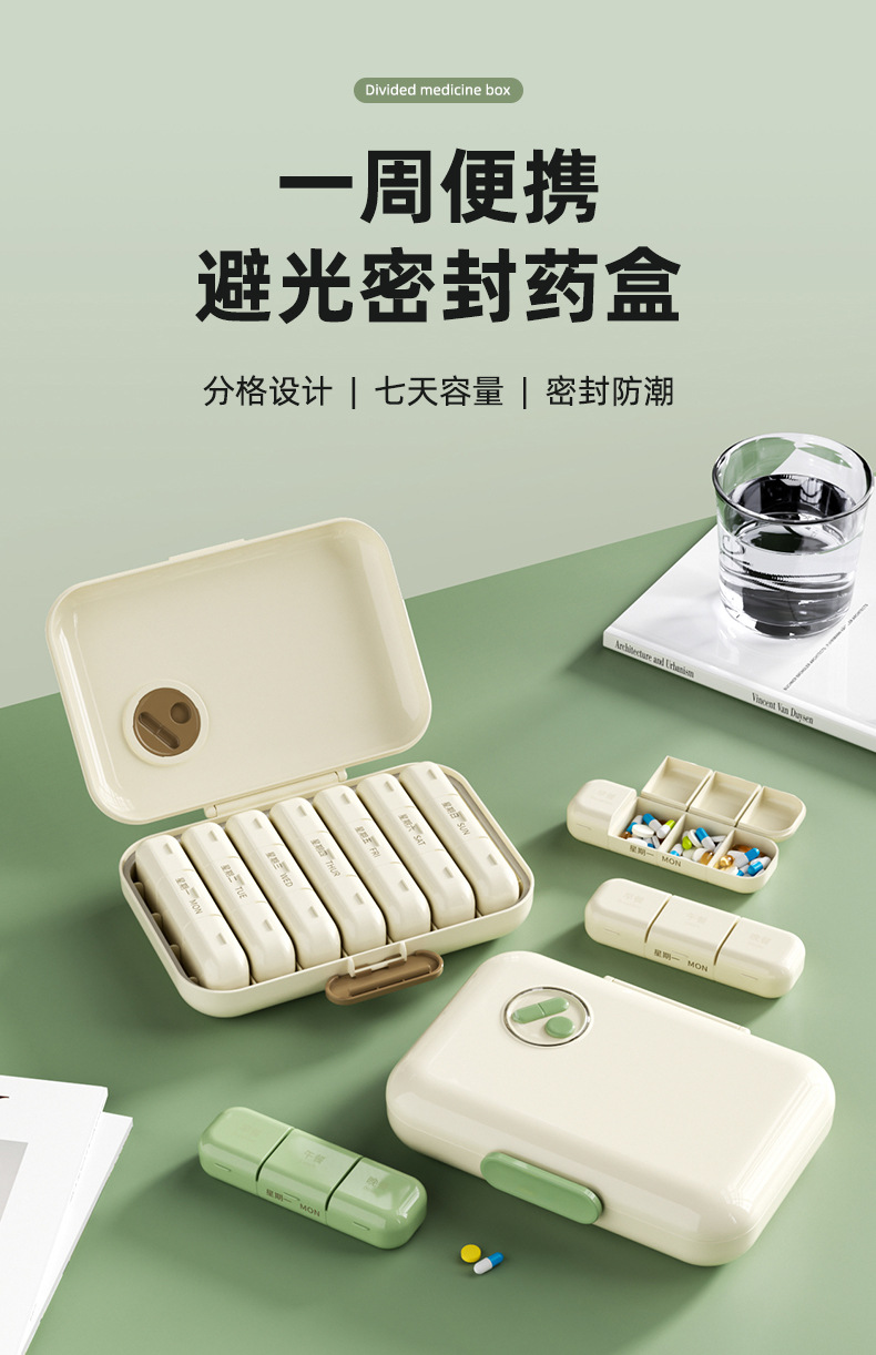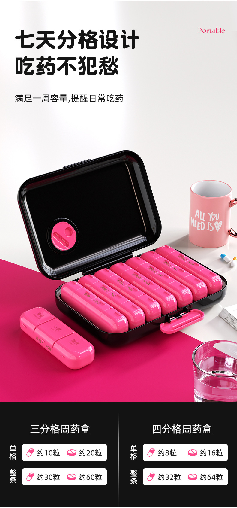 약 상자 일주일에 7 일 휴대용 작은 약 상자 약 알림 약 상자 밀봉 방습 3 식 약 상자스토어 가기