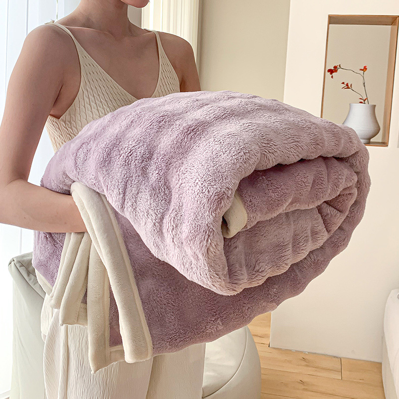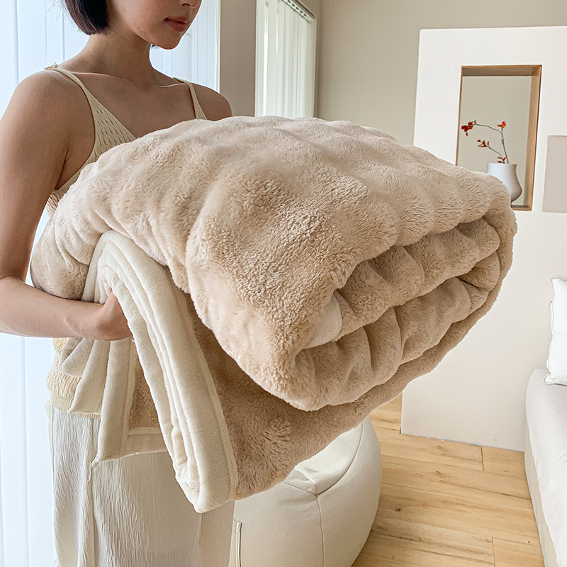 고급 스타일 빛 럭셔리 토끼 봉제 담요 사무실 낮잠 겨울 기모 침대 담요 gr스토어 가기