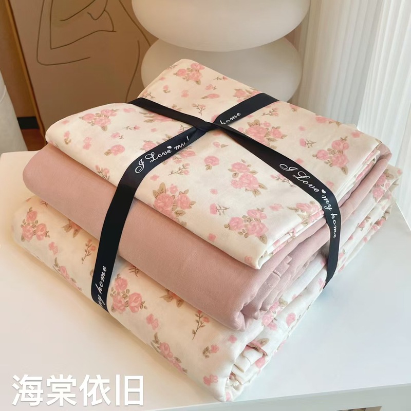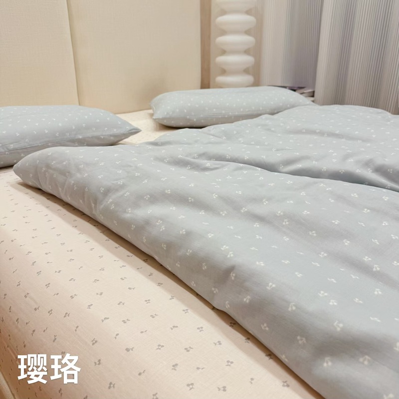 2025 새로운 면 클래스 A 모성 및 유아 등급 항균 에어로빅 면 더블 레이어 원사 피부 친화적 인 면 신선한 4 피스 세트