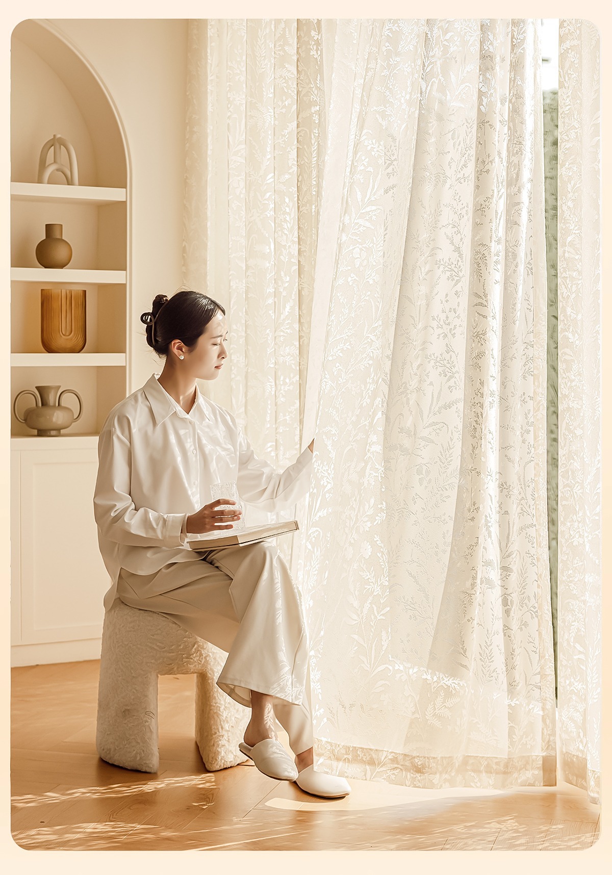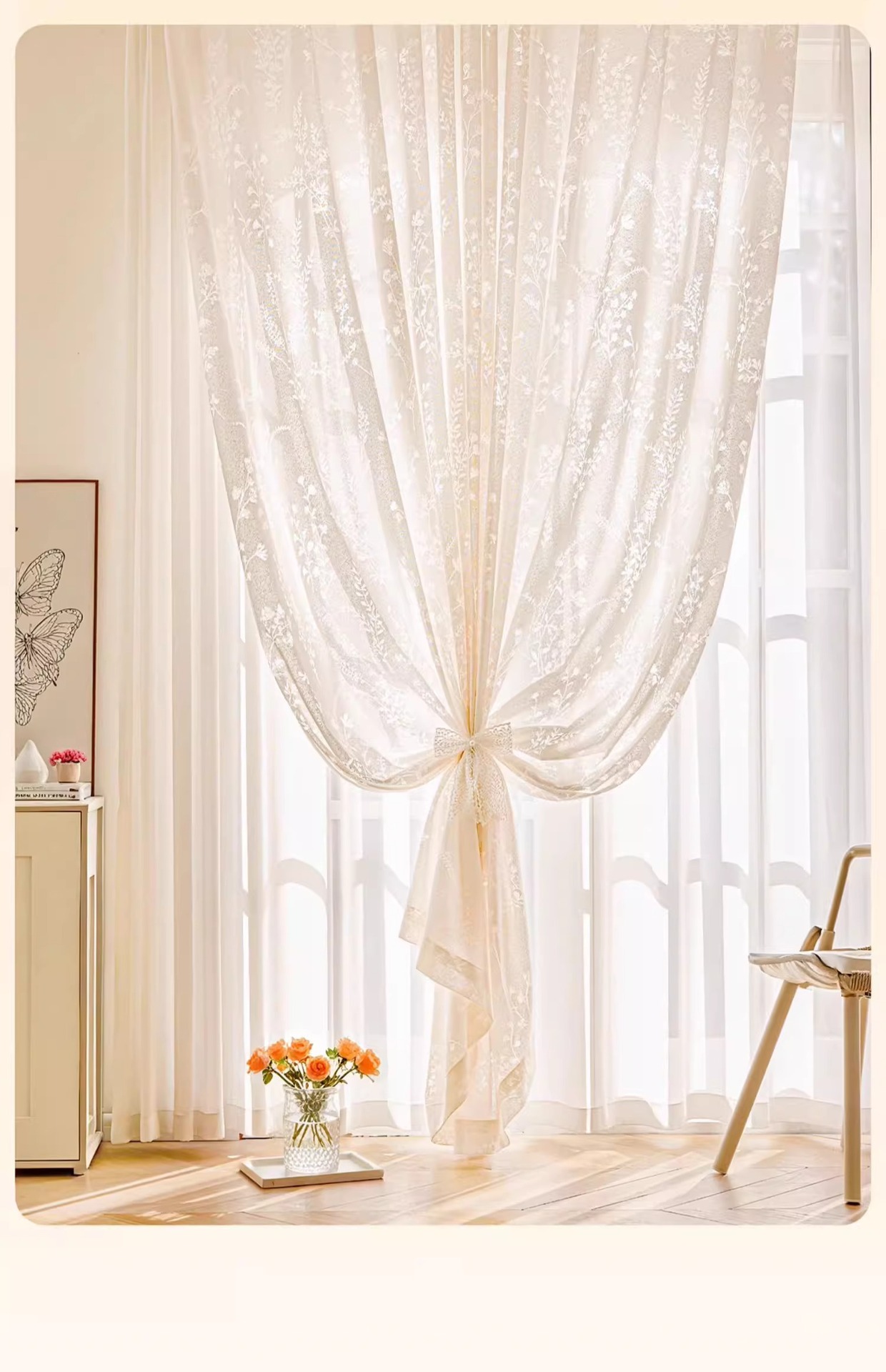 문 브랜치 그림자 거즈 커튼 프랑스 커튼 음영 2025 새로운 스타일 침실 소녀 고급 감각 빛 투명 거실 천스토어 가기