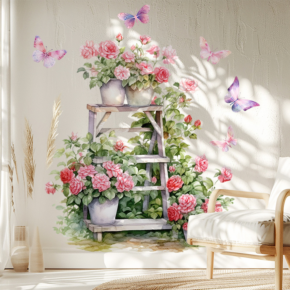 Yiyao DD3649 공장 직접 식물 꽃 화분 선반 벽 스티커 거실 침실 장식 자체 접착 스티커스토어 가기