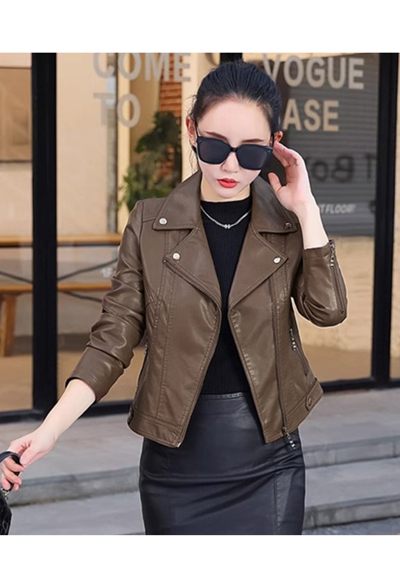 짧은 PU 가죽 자켓 여성의 봄과 가을 2025 새로운 패션 서양 스타일 재킷 홍콩 스타일 디자인 센스 오토바이 탑
