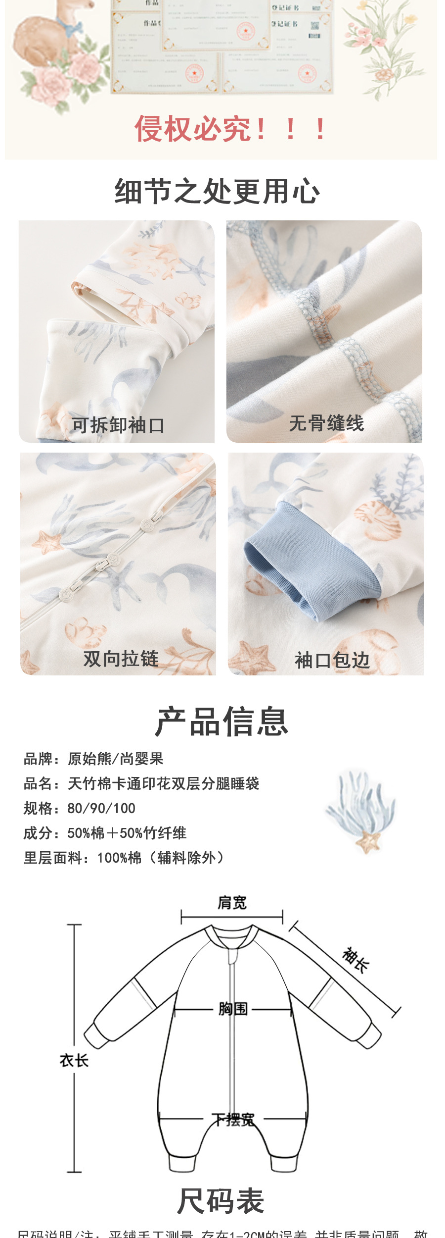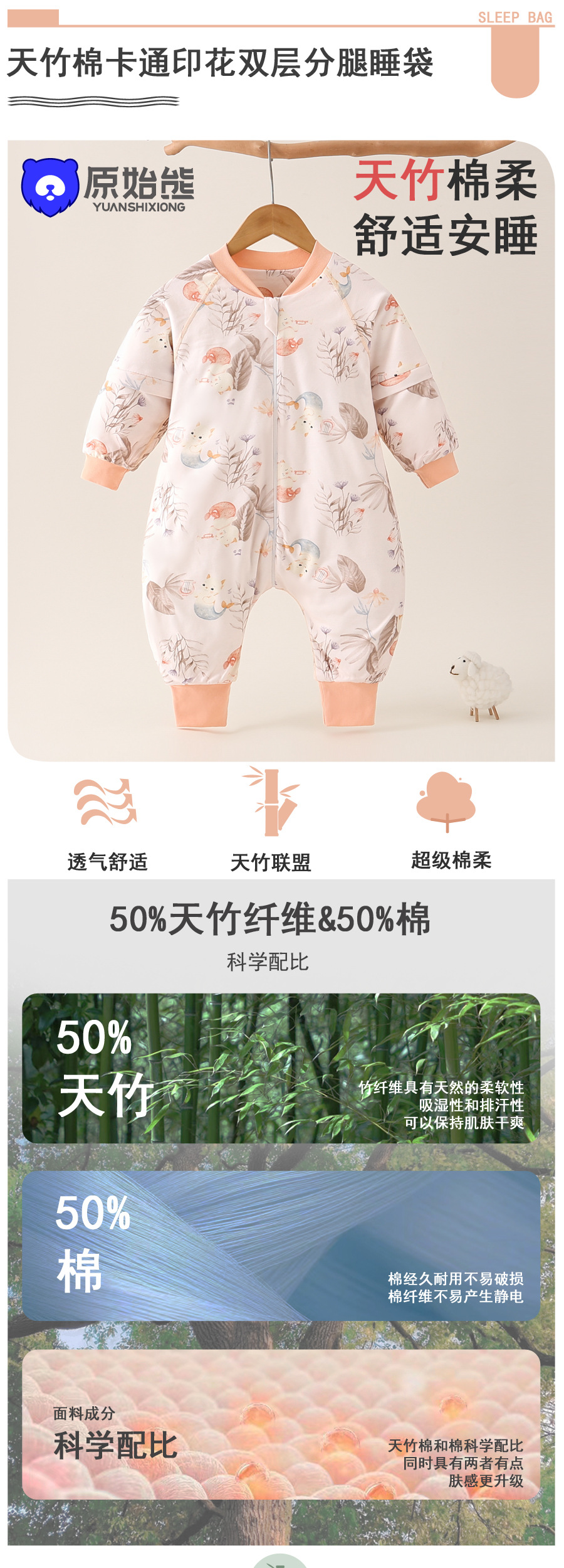 아기 슬리핑 백 봄과 여름 대나무 섬유 분할 다리 잠옷 킥 방지 조용한 사계절 유니버설 어린이 아기 더블 천 슬리핑 백스토어 가기