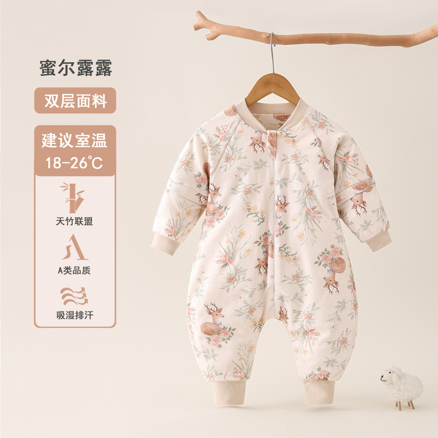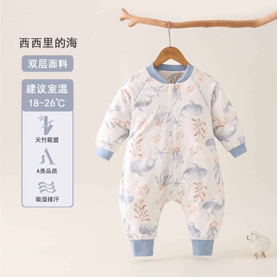 아기 슬리핑 백 봄과 여름 대나무 섬유 분할 다리 잠옷 킥 방지 조용한 사계절 유니버설 어린이 아기 더블 천 슬리핑 백