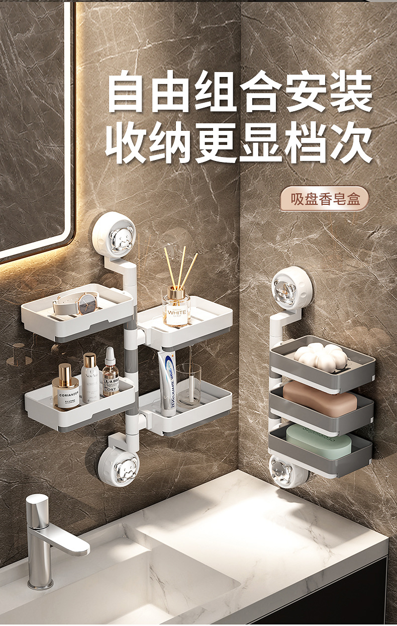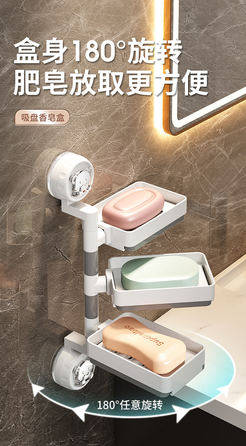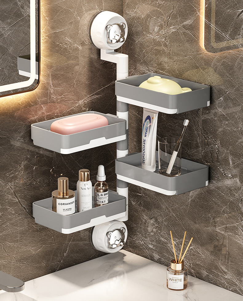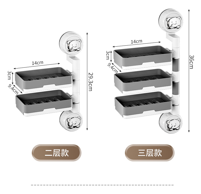 베어 흡입 컵 회전 비누 랙 멀티 레이어 벽 교수형 비 펀치 회전 가능한 창조적 인 멀티 레이어 배수 비누 상자 가정용