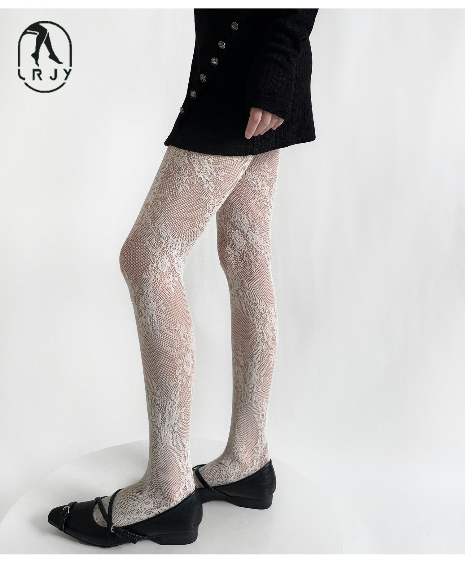 • 흰 꽃 망사 스타킹