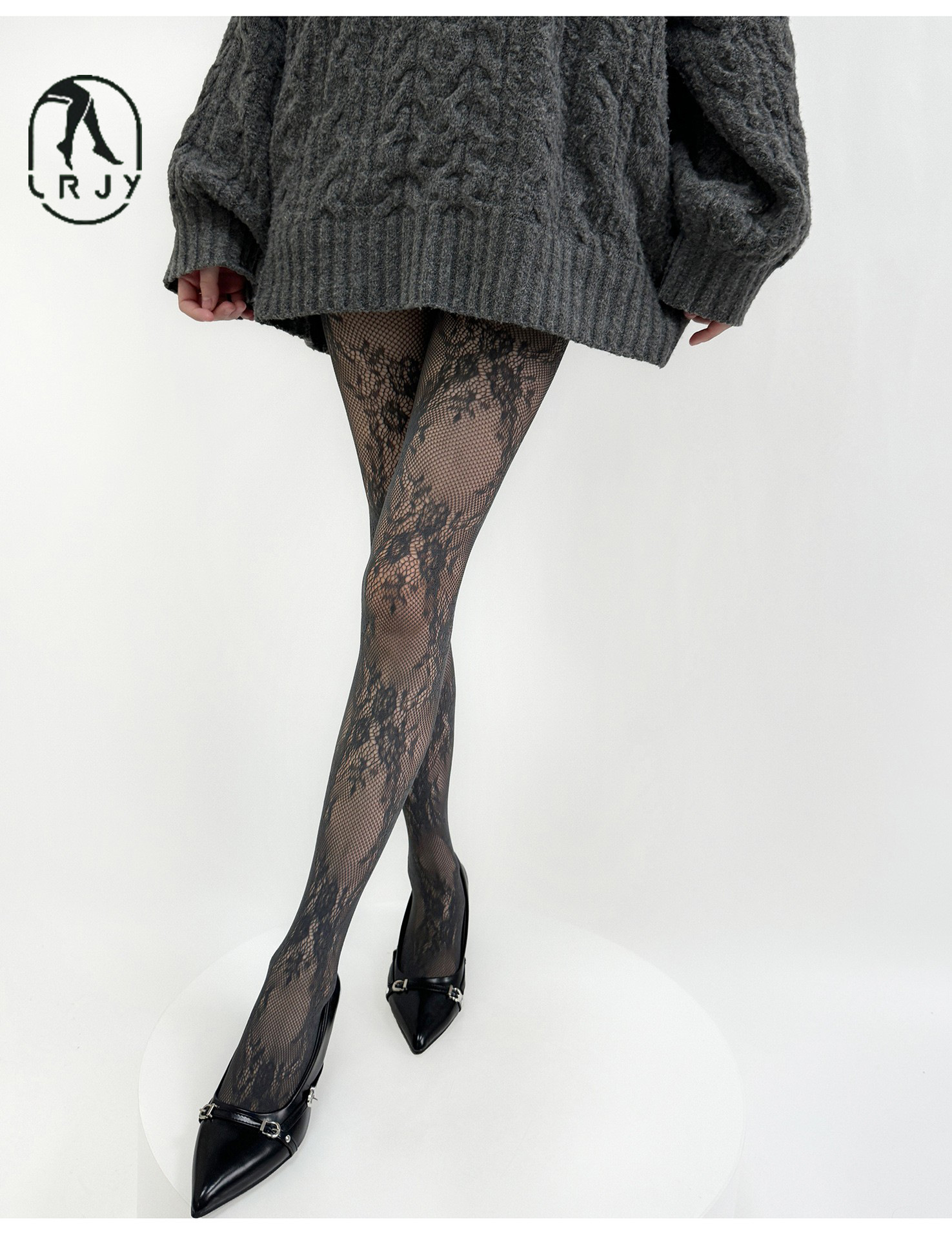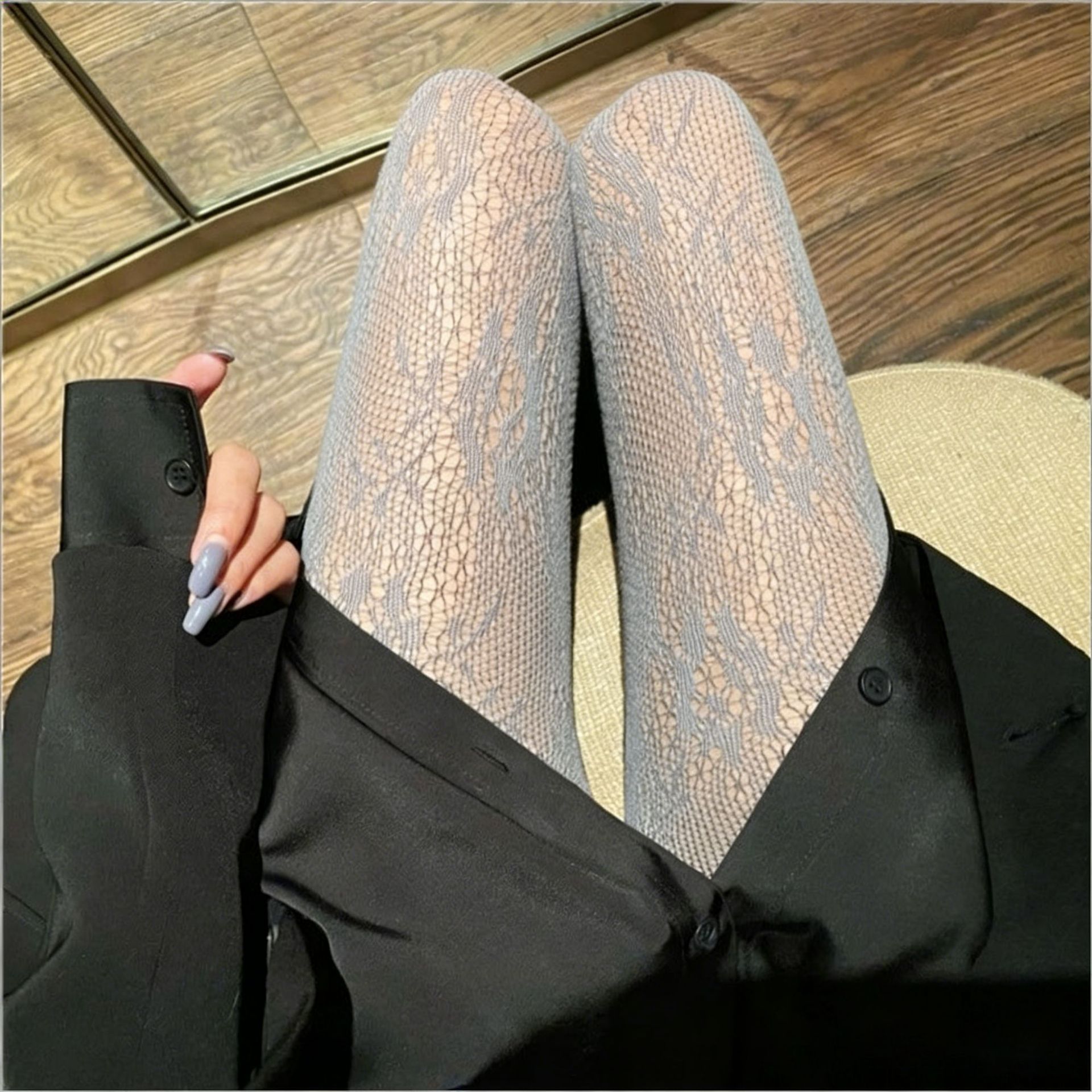 • 라이트 그레이 플로럴 피쉬넷 스타킹
