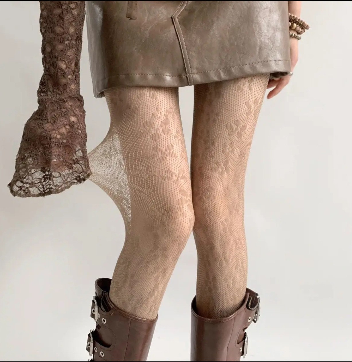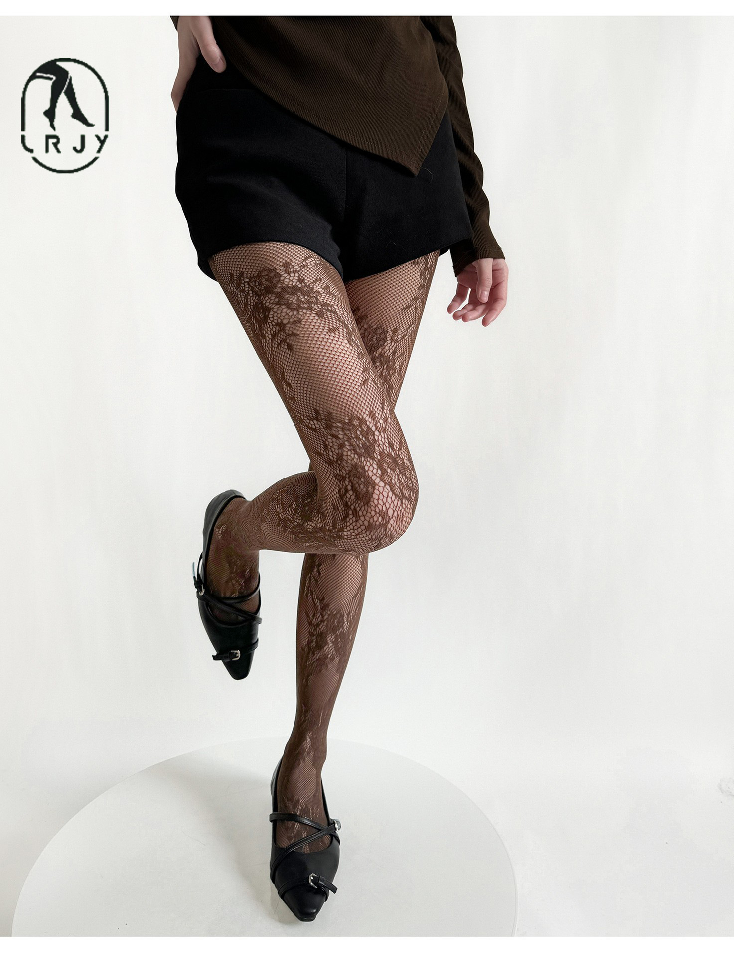 • 브라운 플라워 피쉬넷 스타킹