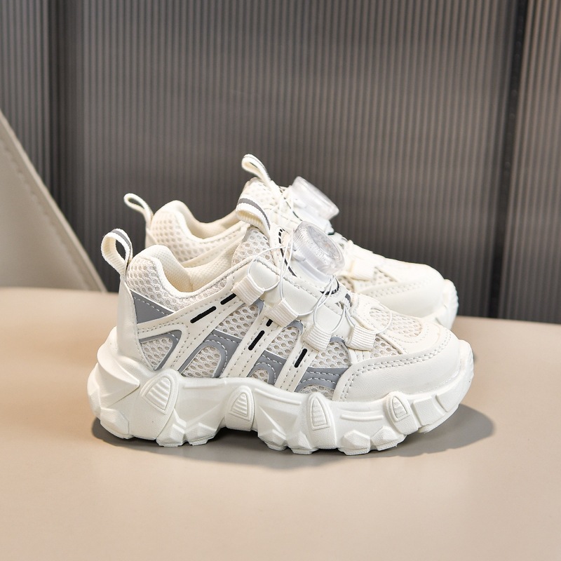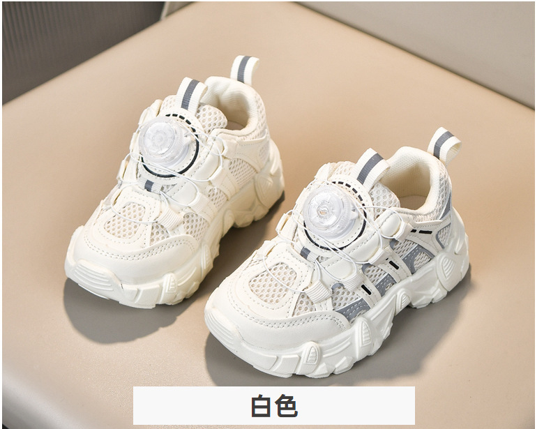 소년 메쉬 신발 통기성 메쉬 표면 어린이 운동화 회전 버튼 아기 흰색 신발 통기성 여자 달리기 신발
