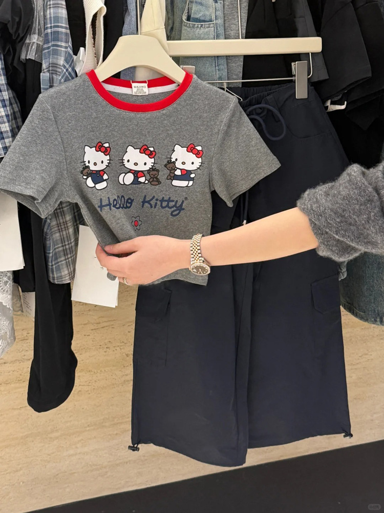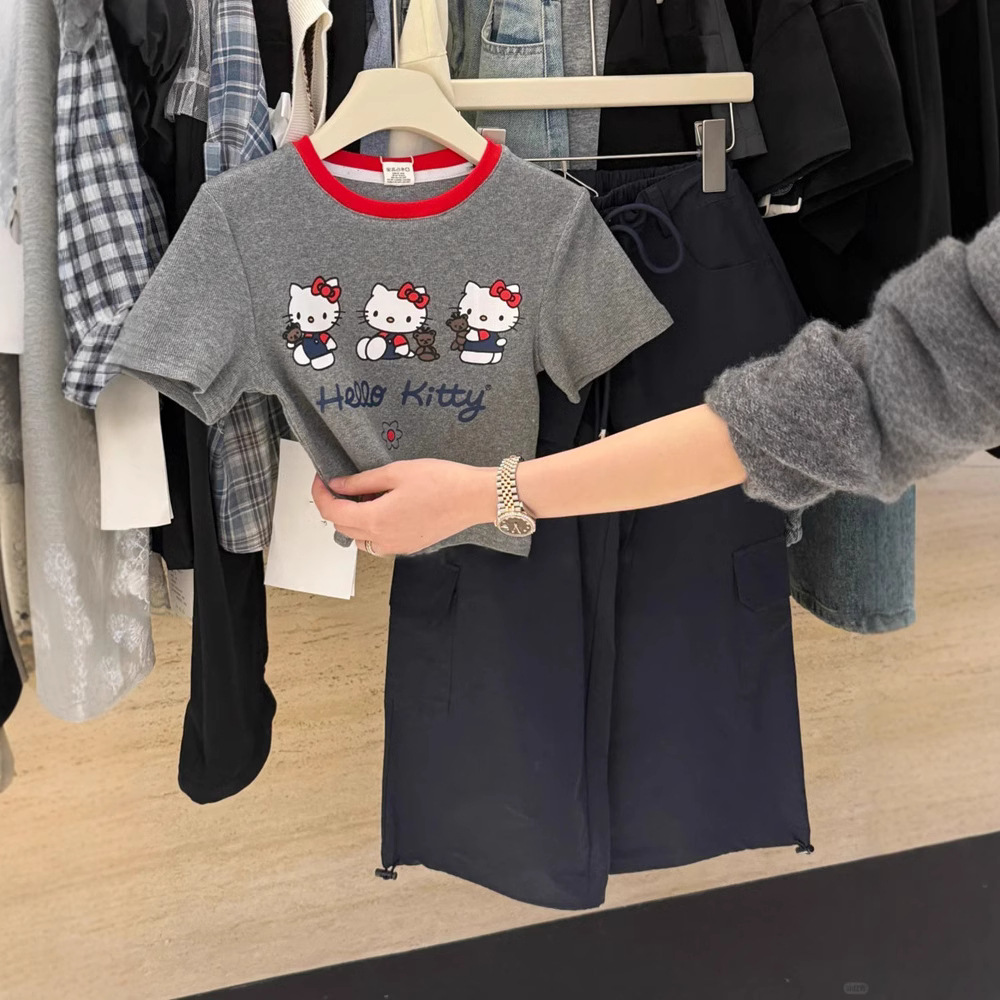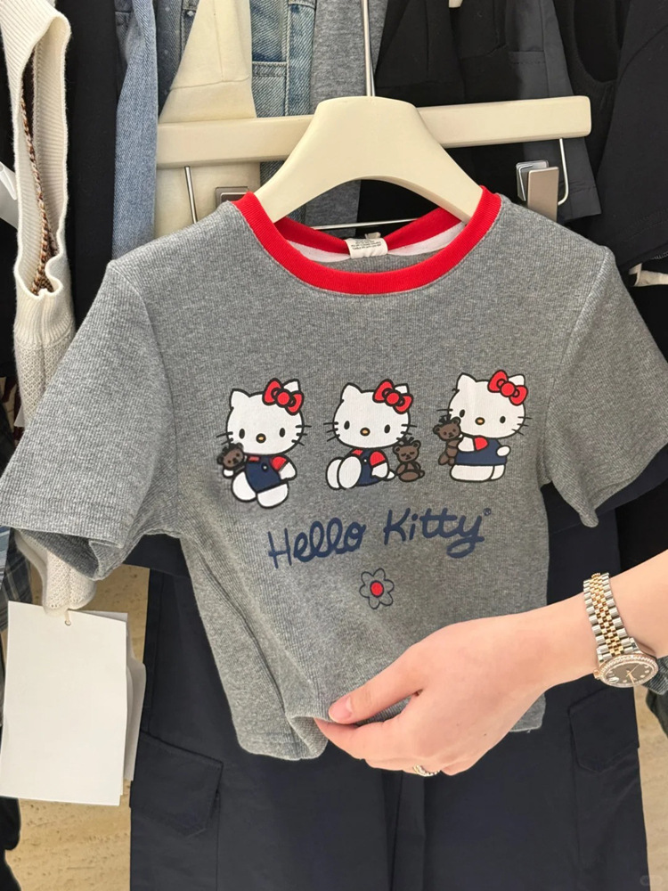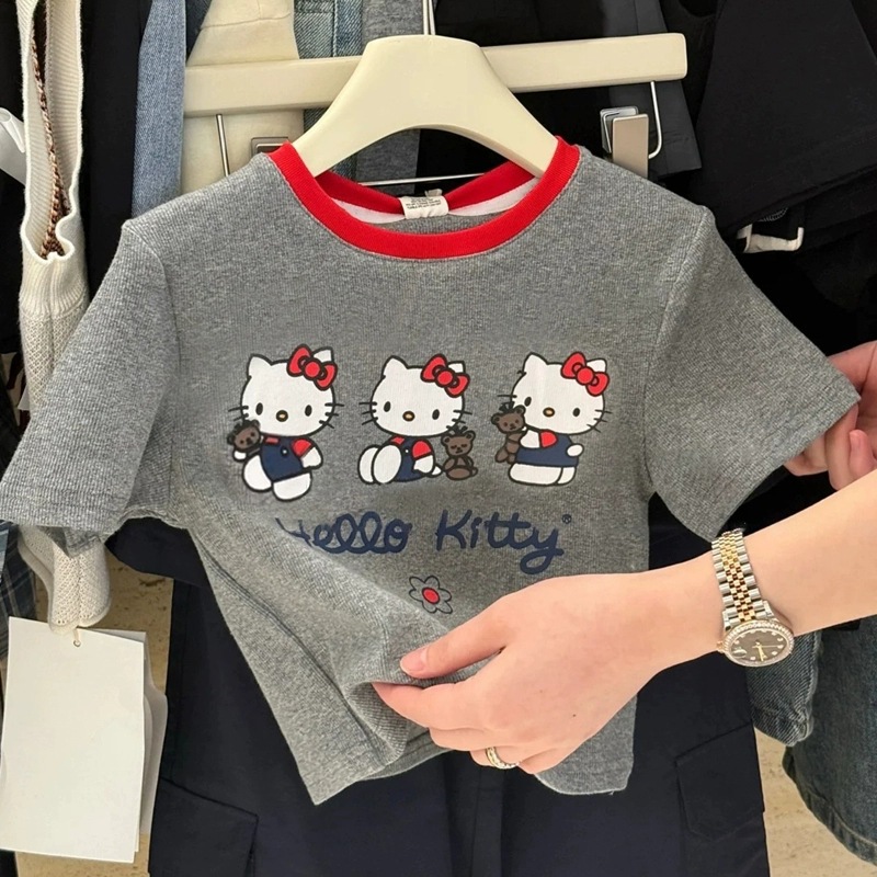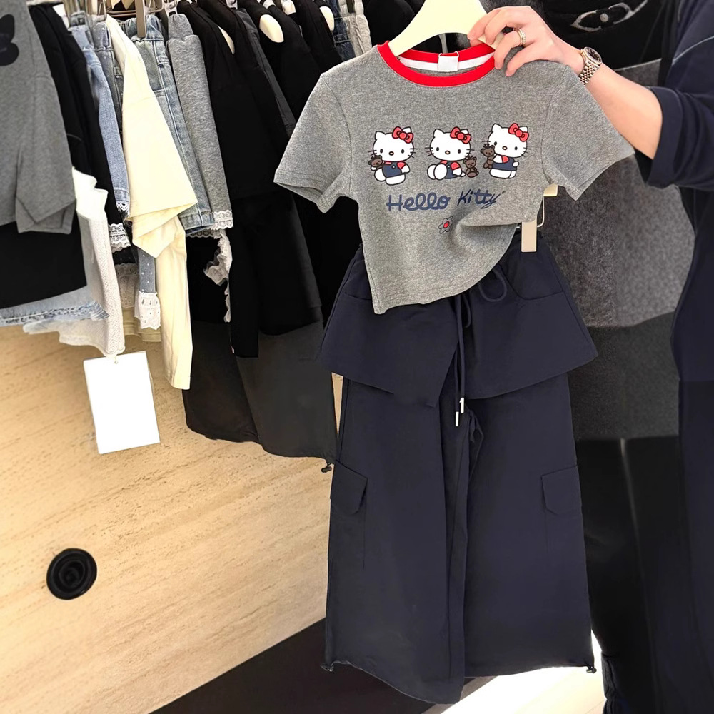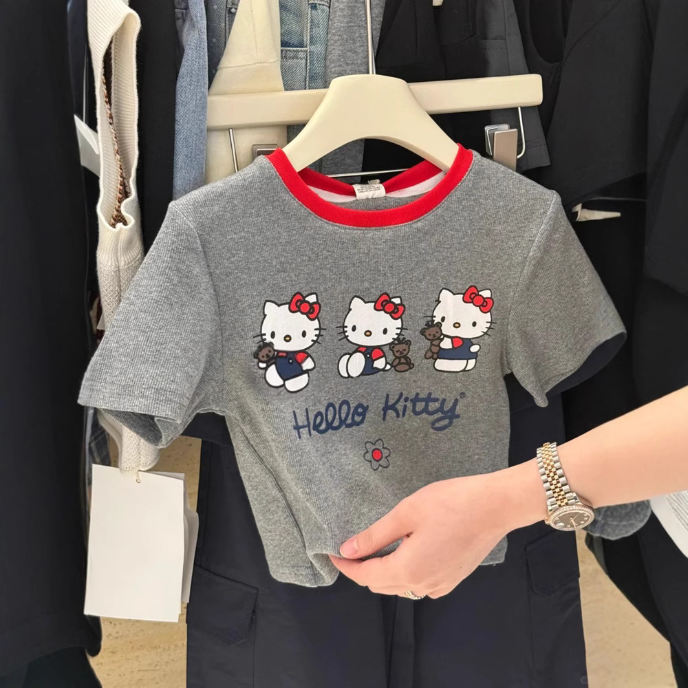 아동용 반팔 티셔츠 2026 봄 여름 신상 여아용 귀여운 키티 고양이 프린트 캐주얼 아동용 상의 도매스토어 가기