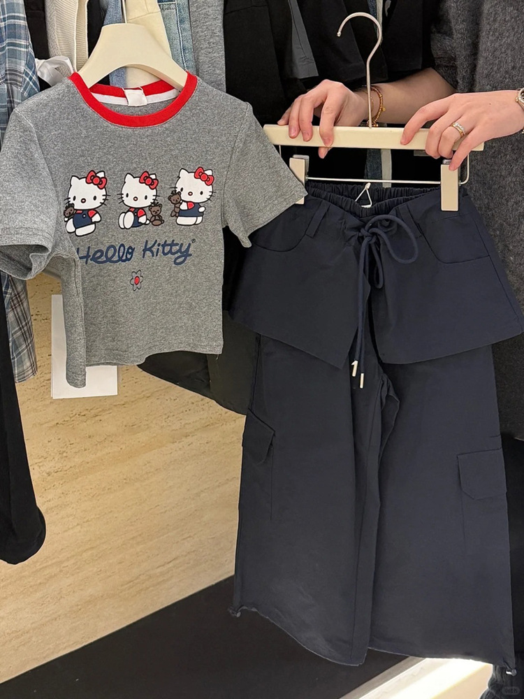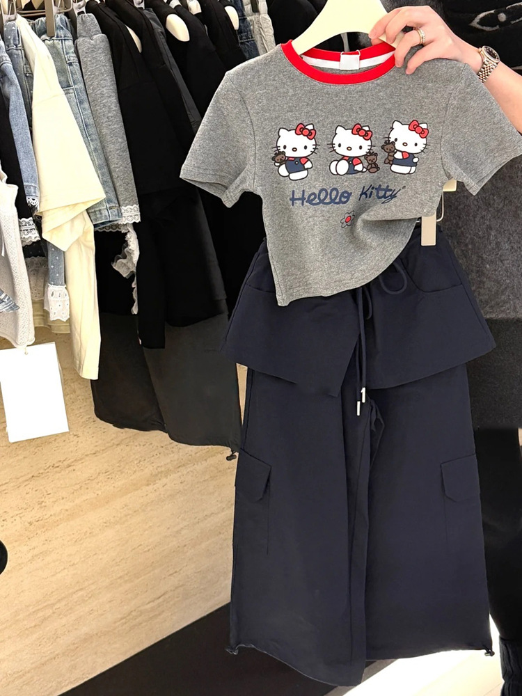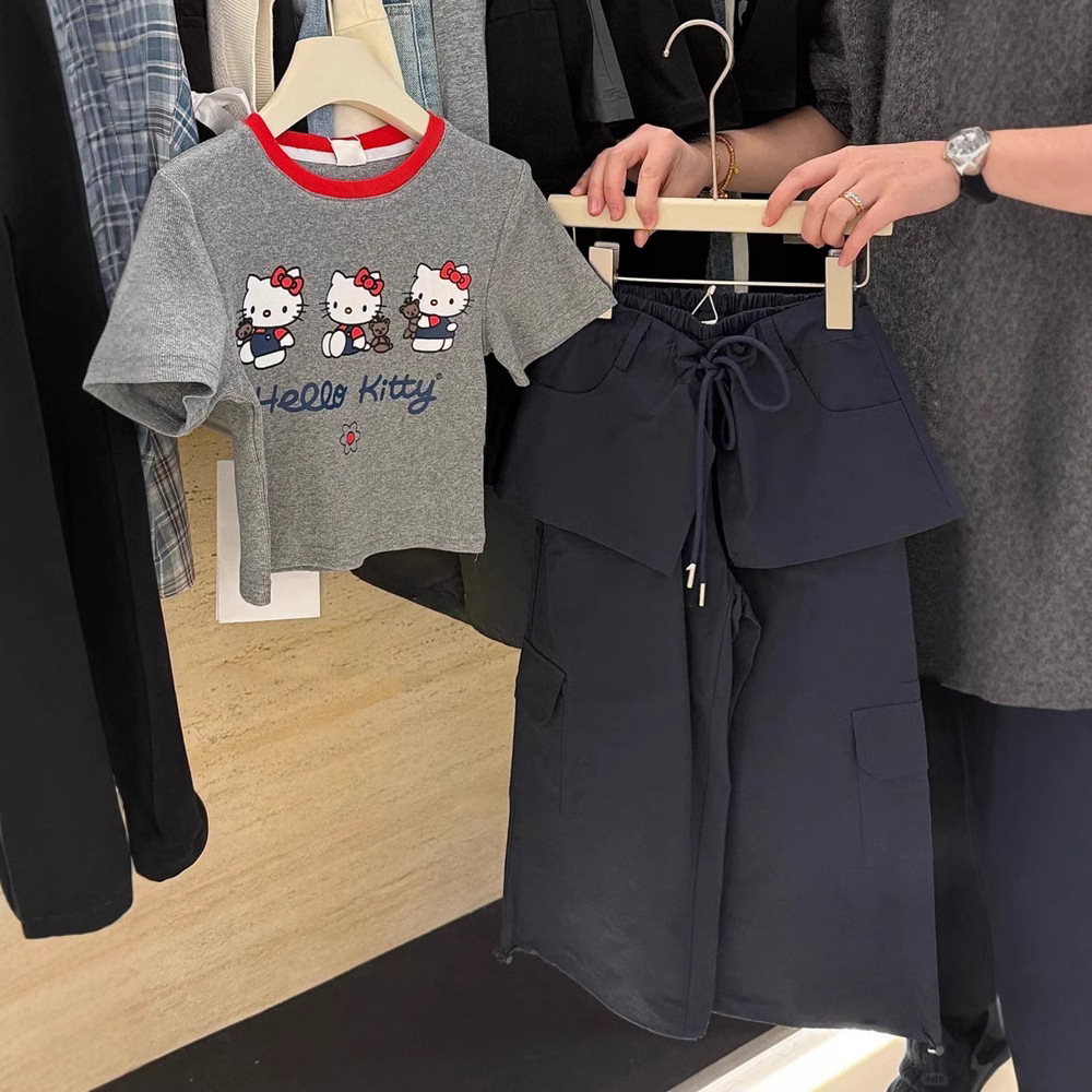 아동용 반팔 티셔츠 2026 봄 여름 신상 여아용 귀여운 키티 고양이 프린트 캐주얼 아동용 상의 도매