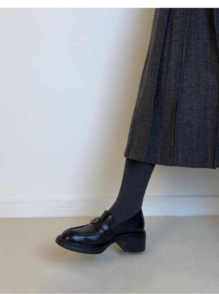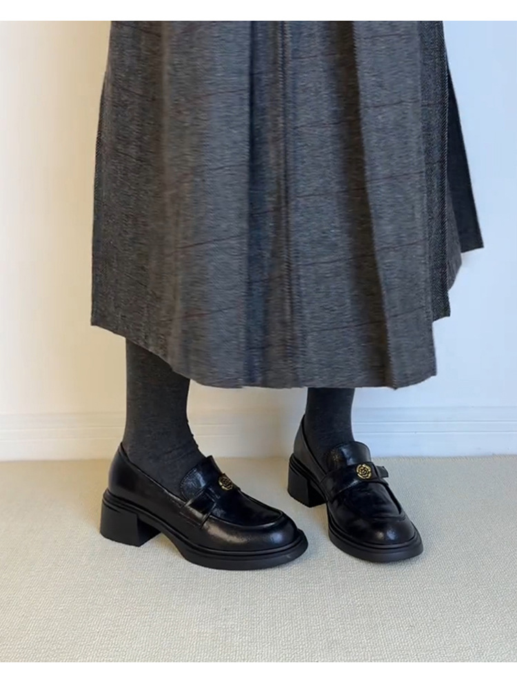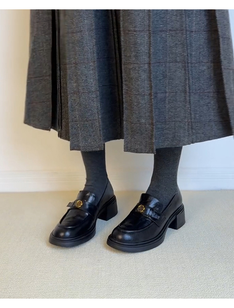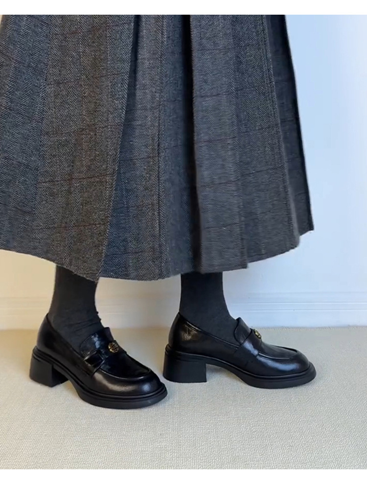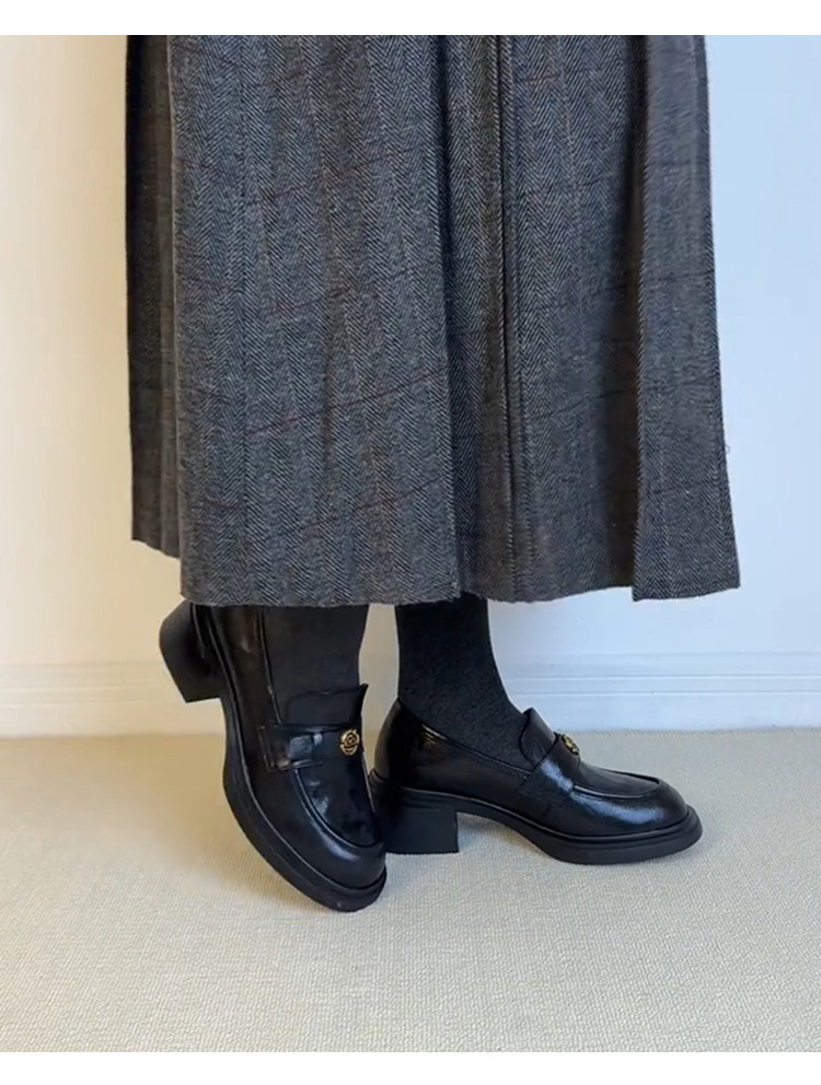 양가죽 버전 ~ 두꺼운 굽 통근 두꺼운 밑창 동백 나무 로퍼 여성용 복고풍 영국 스타일 단층 신발 페달 작은 가죽 신발.