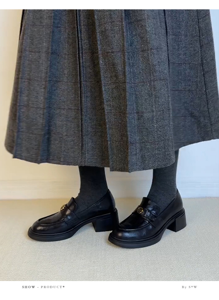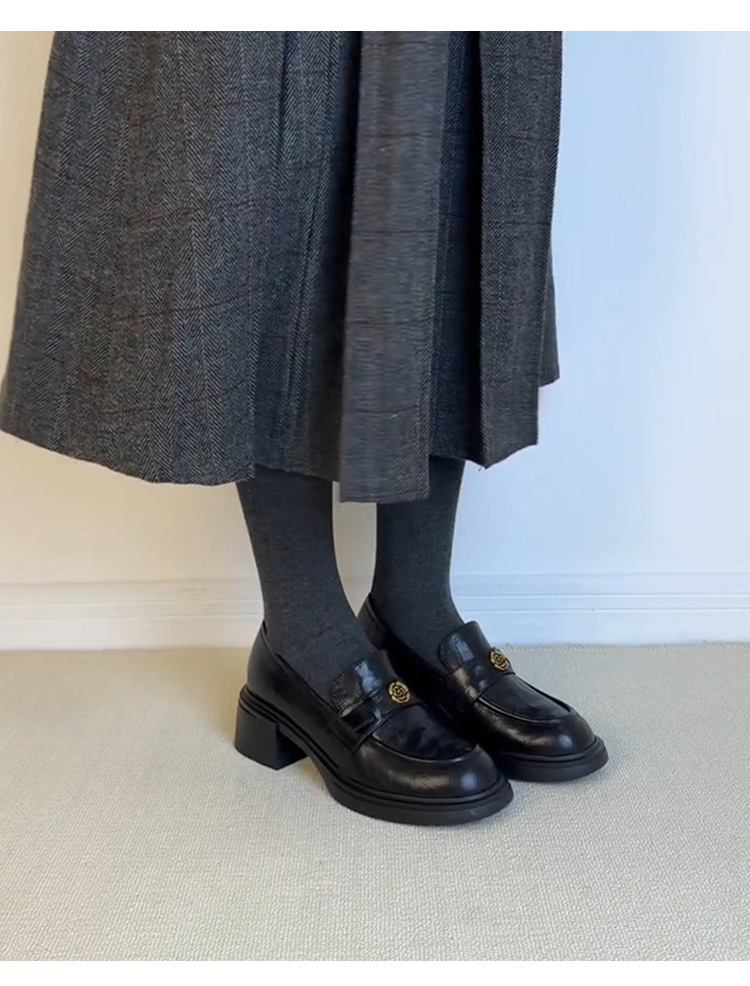 양가죽 버전 ~ 두꺼운 굽 통근 두꺼운 밑창 동백 나무 로퍼 여성용 복고풍 영국 스타일 단층 신발 페달 작은 가죽 신발.스토어 가기